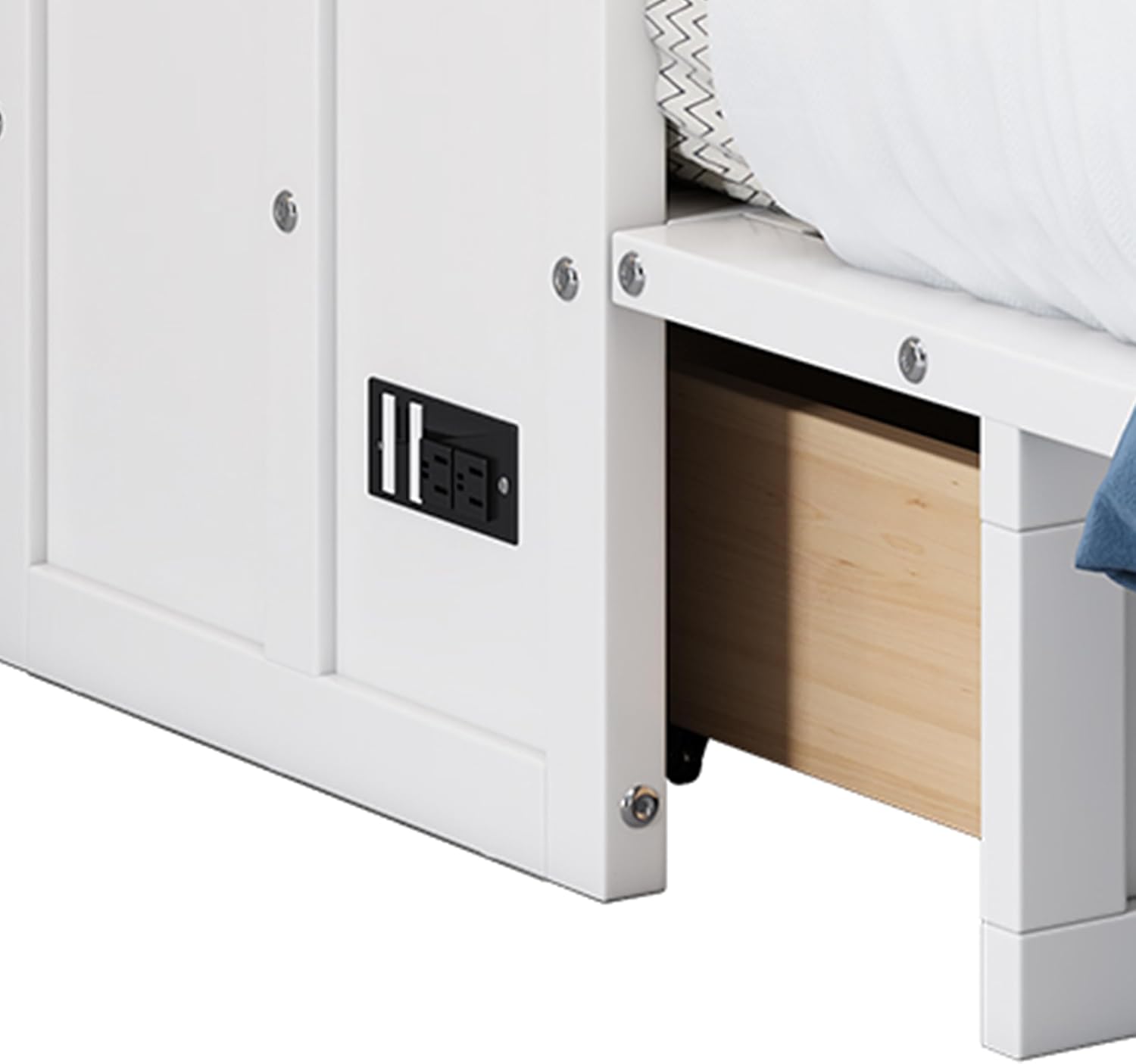 Full Size Solid Pine Murphy Bed Chest with Charging Station and Large Storage Drawe,Folding feature perfect for home office or small room.