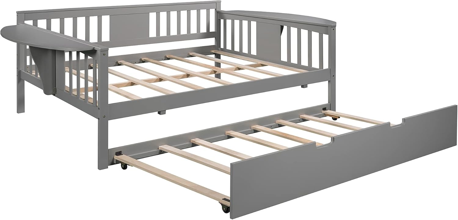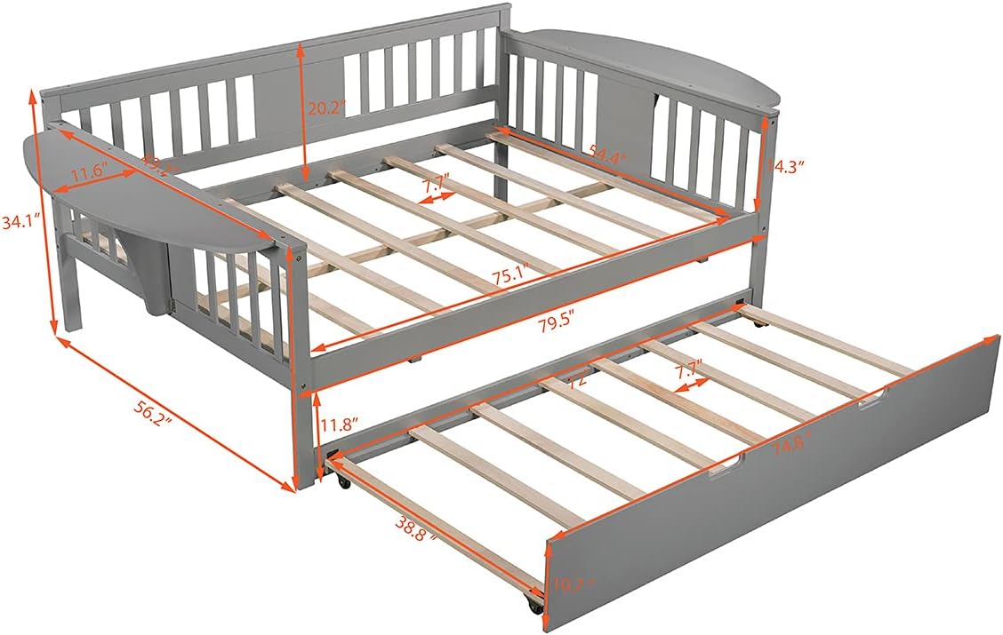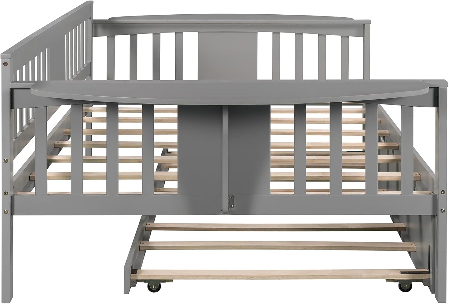Full Size Daybed Wood Bedframe with Twin Trundle, Full Sofa Bed for Living Room, Bedroom, Small Living Spaces