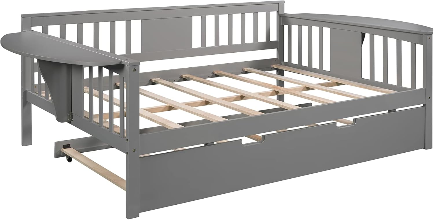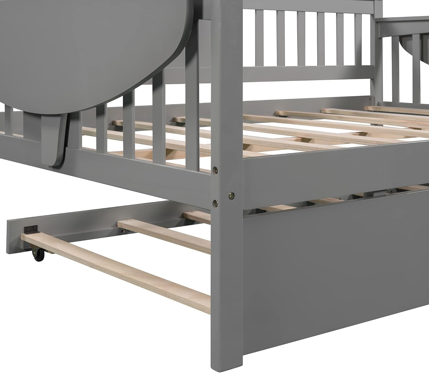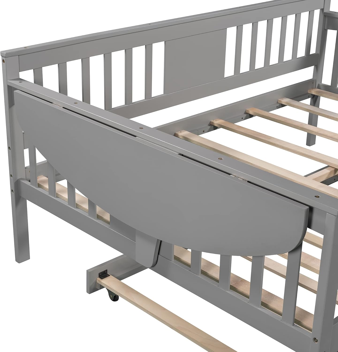 Full Size Daybed Wood Bedframe with Twin Trundle, Full Sofa Bed for Living Room, Bedroom, Small Living Spaces