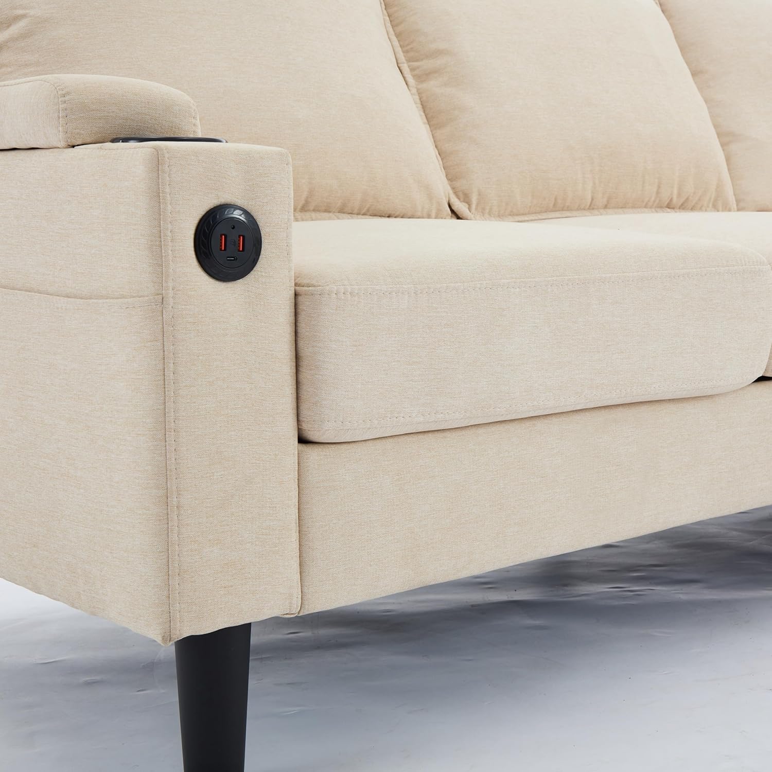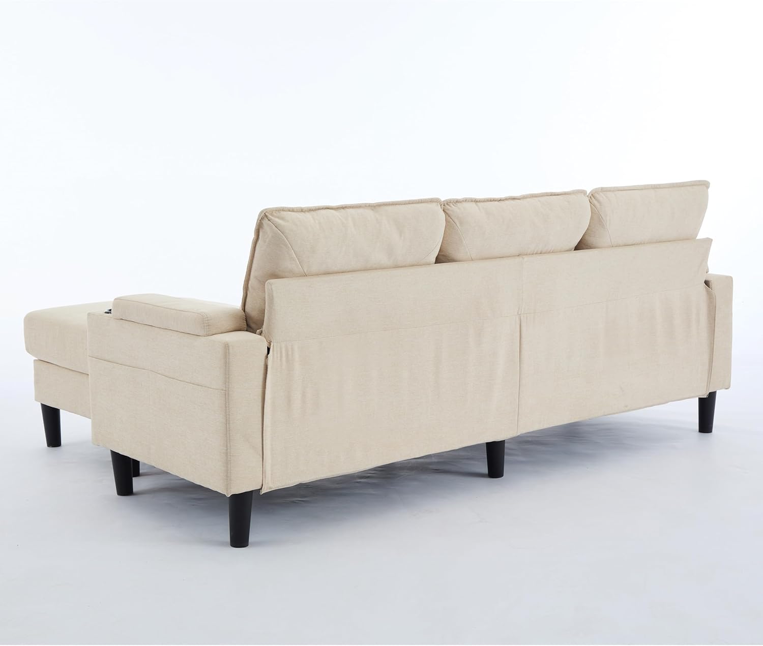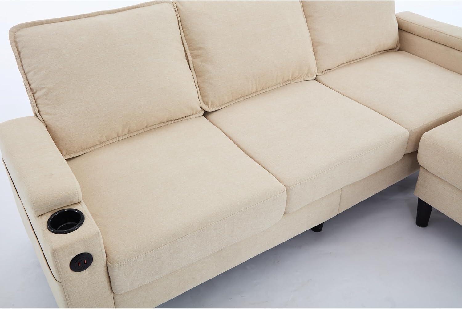 Furniture Modular Sectional Sofa with Movable Ottoman,Modern Upholstered Convertible L Shaped Couch w/ 2 Cup Holders/Side Pocket/USB Port for Apartments Dorms Home,Living Room,Beige