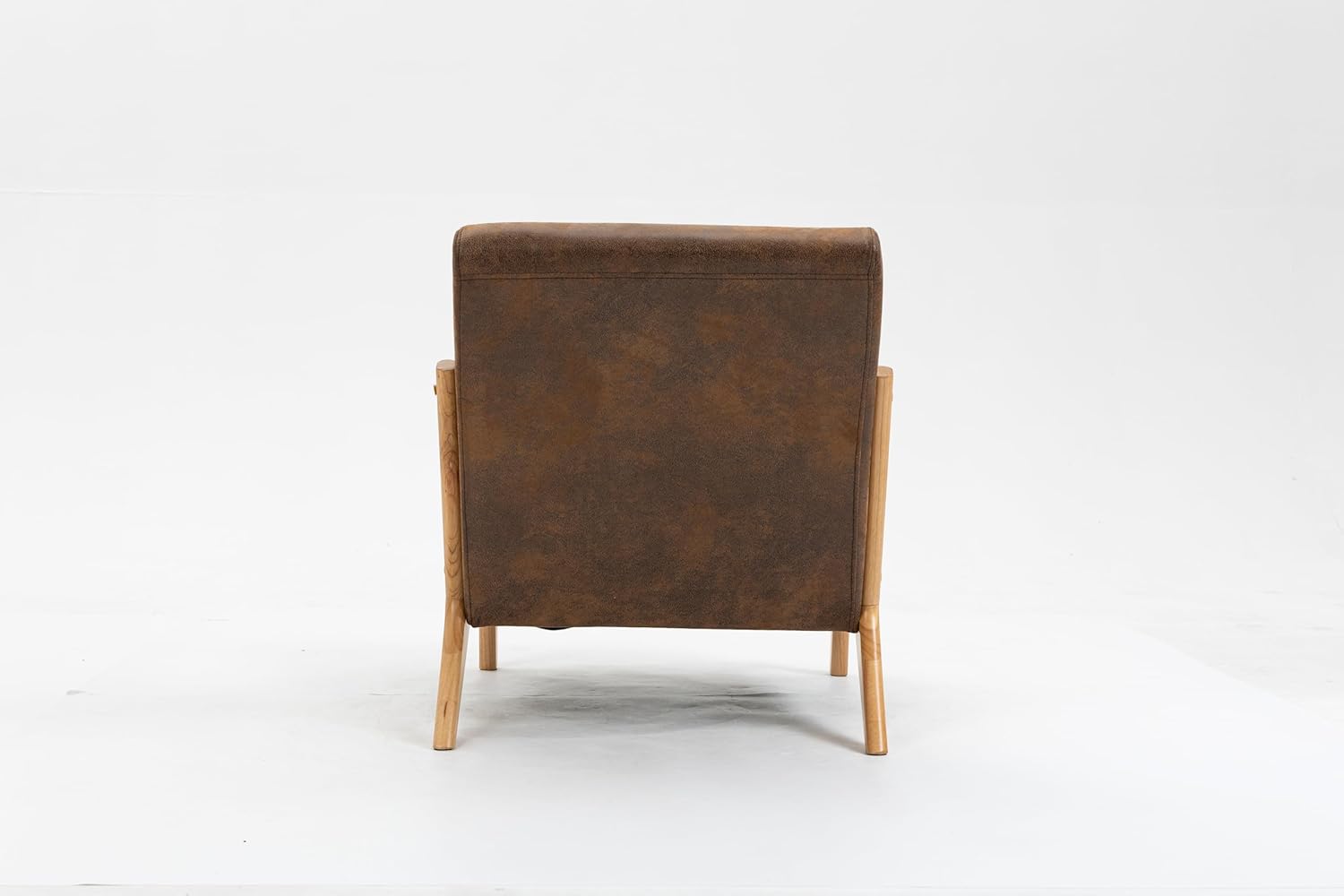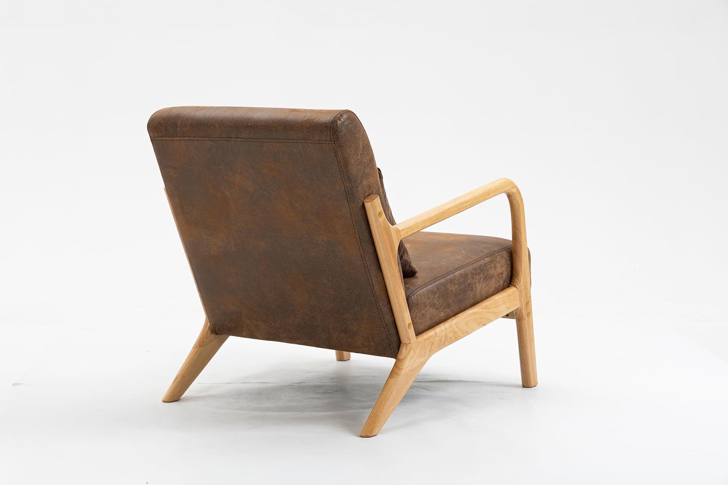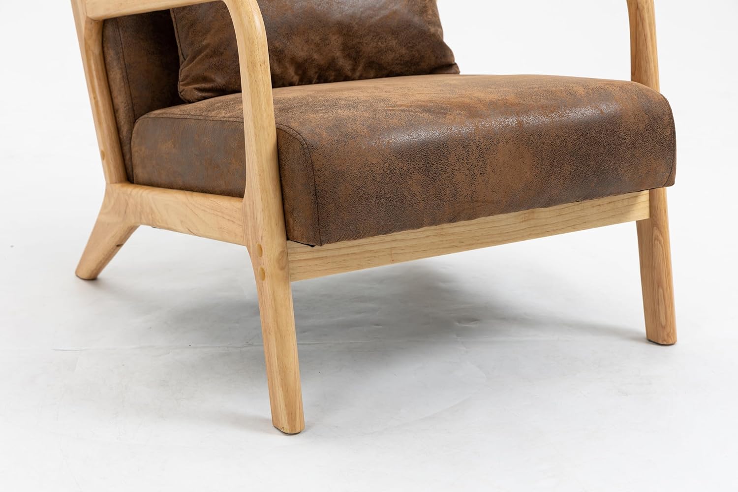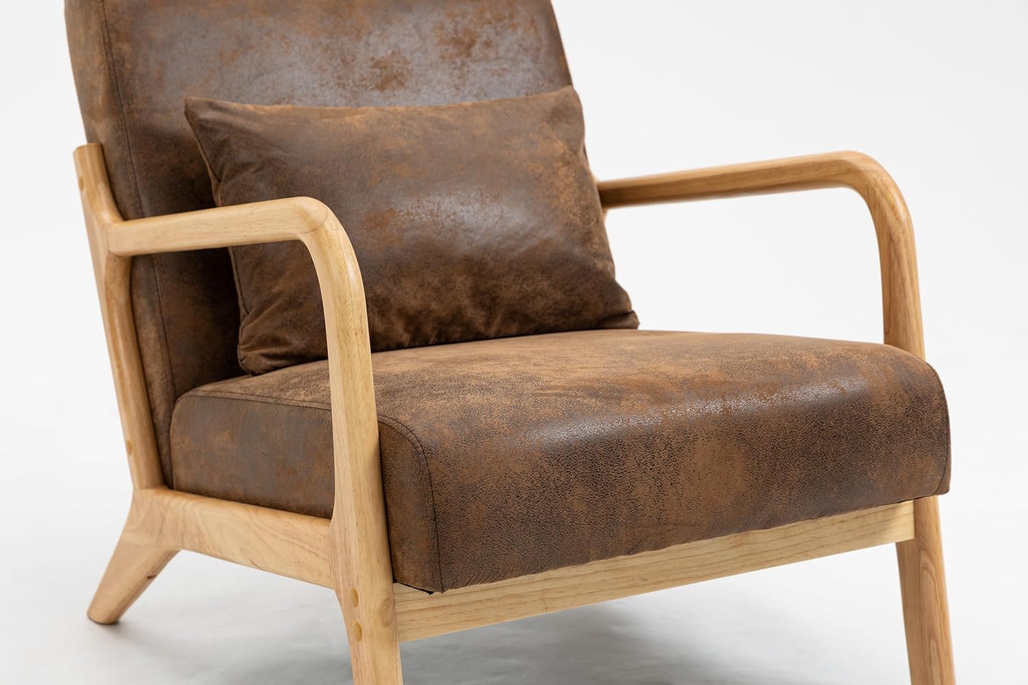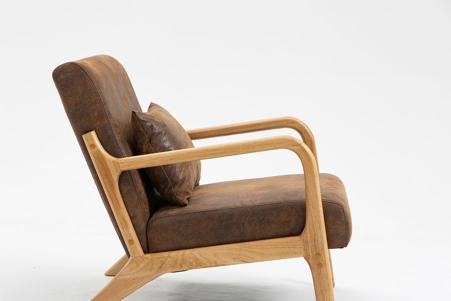 Mid Century Modern Accent Chair with Wood Frame, Upholstered Living Room Chairs with Waist Cushion, Reading Armchair for Bedroom Sunroom 2035A
