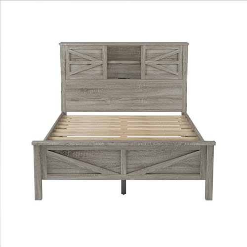 SOFTSEA Full Size Bed Frame, Platform Bed Frame with Headboard for Bedroom Guest Room Small Room, Solid Wood Bed Frame with Slat Support for Kids Adults, No Box Spring Needed, Easy Assembly, Oak