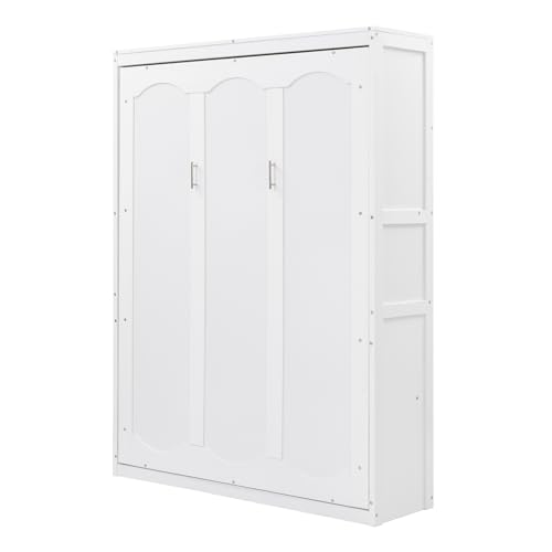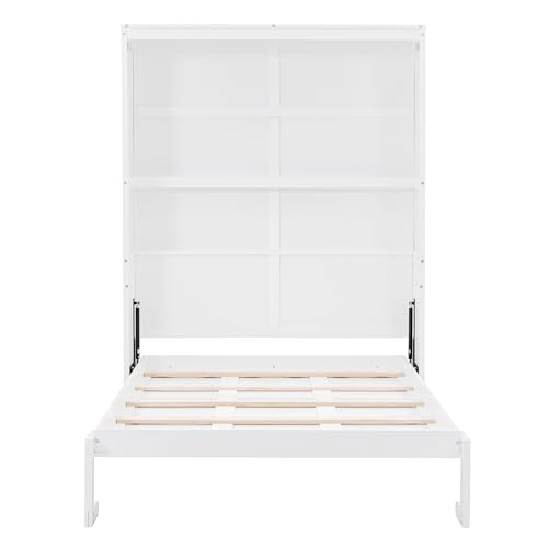 Full Size Murphy Bed Wall Bed with Shelves, Wood Murphy Bed Wall Bed Folding Wall Bed for Home Office or Small Room, White