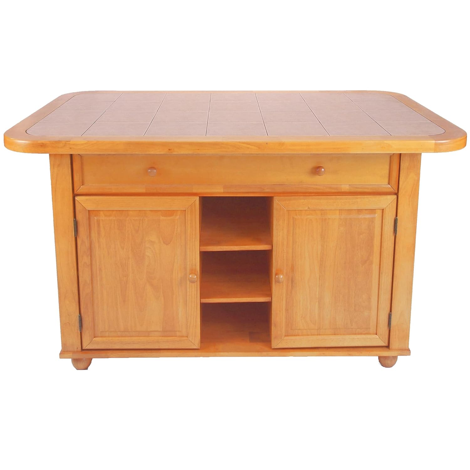 Sunset Trading Sunset Selections Tile Top Kitchen Island, Light Oak Finish