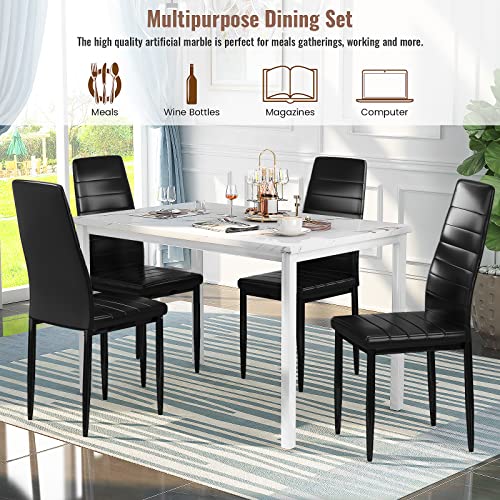 Dining Table Set for 4, Marble Kitchen Table and Chairs for 4, Comfortable PU Leather Chairs,Dining RoomTable Set for Small Space,Living Room, Breakfast Nook,White