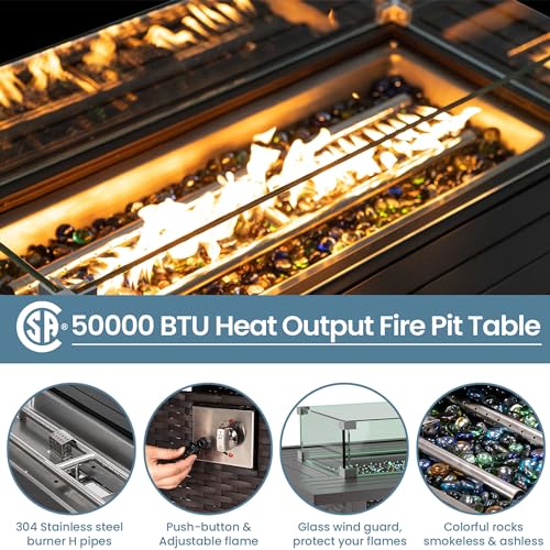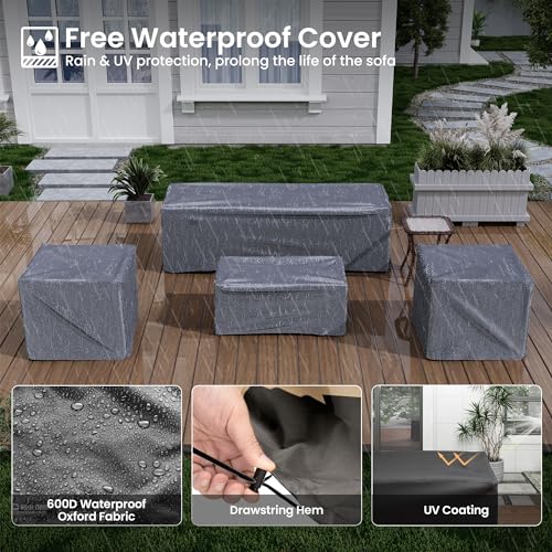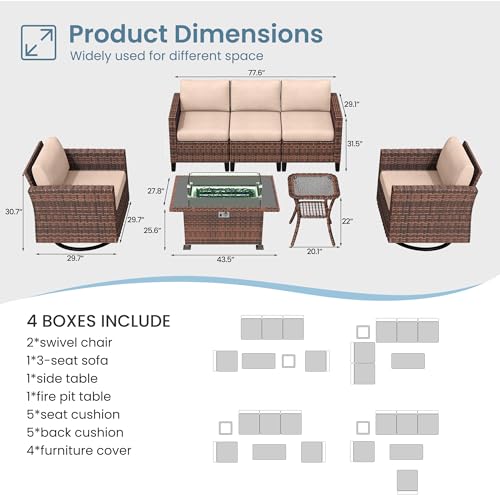 Amopatio Patio Furniture Set with Fire Pit Table, 7 Pieces Outdoor Sectional Patio Sofa, Wicker Rattan Conversation Sets for Backyard, Pool, Beige(Include Waterproof Covers )