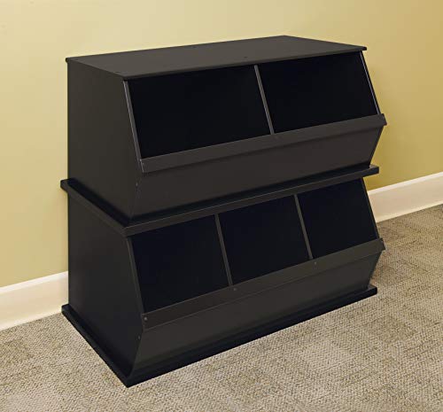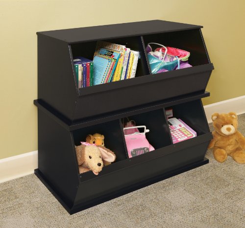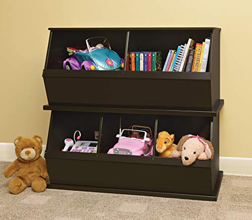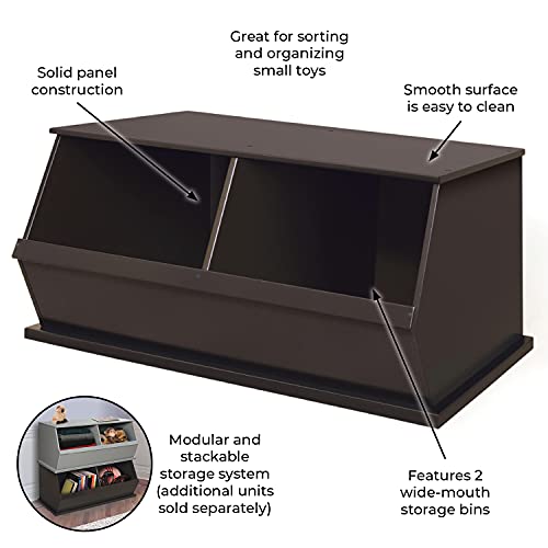 Badger Basket Two Bin Stackable Toy Storage Cubby Organizer - Woodgrain/Gray