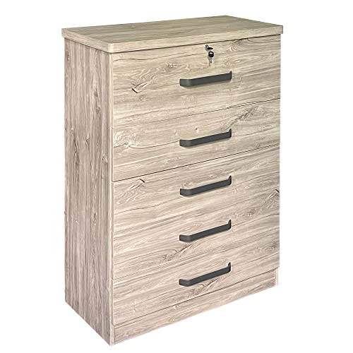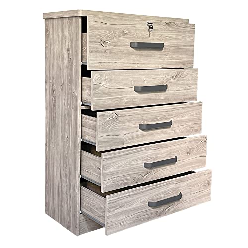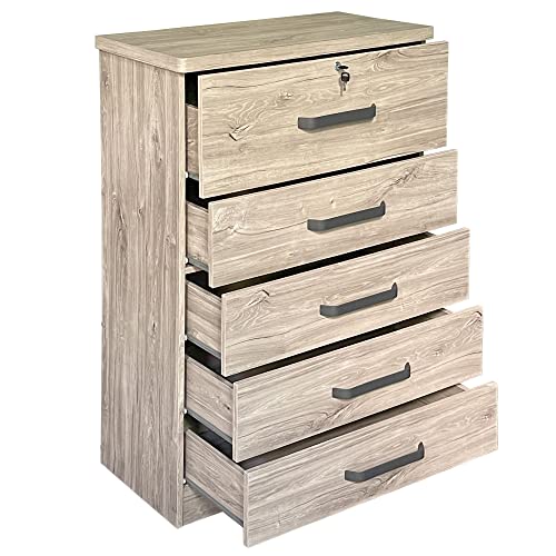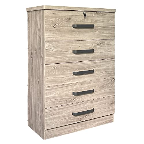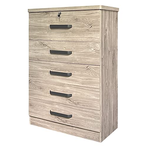 Better Home Products 5 Drawer Dresser with lock, Dressers for Bedroom, Living Room, Hallway, Tall Chest of Drawers Closet Organizers and Storage for all your clothing and accessories,