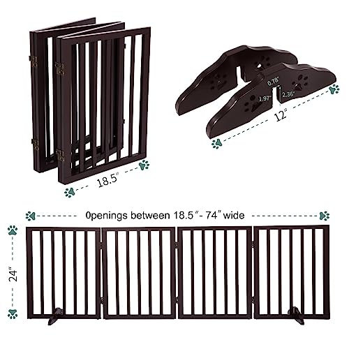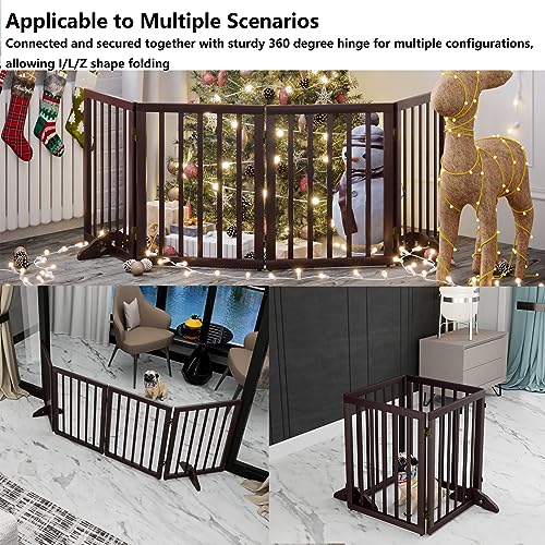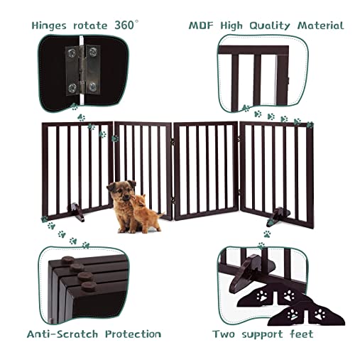 Freestanding Pet Gate Foldable Dog Gate (74 inches Wide) Walnut Bamboo Dog Gates for Stair Doorways House Dog Fences Indoor (2 Support Feet Included)