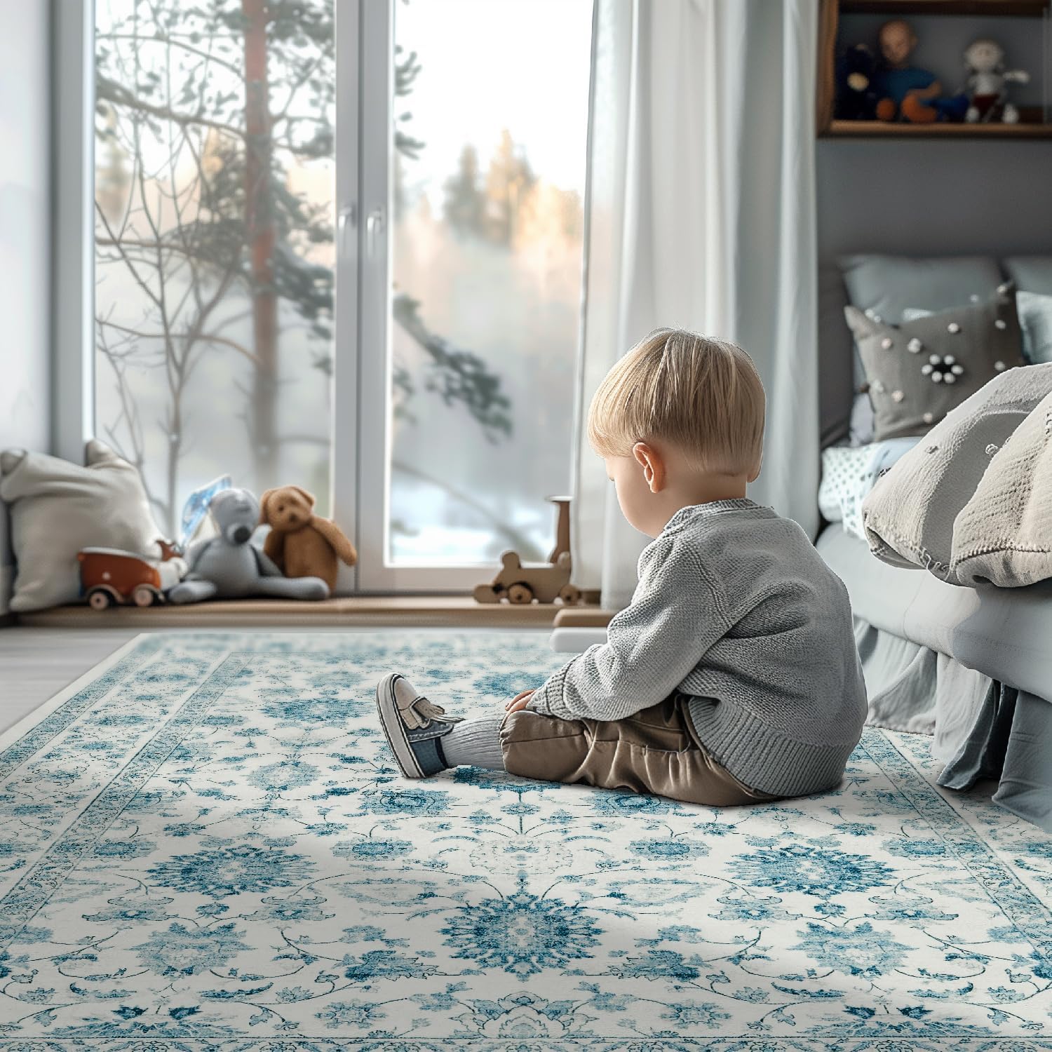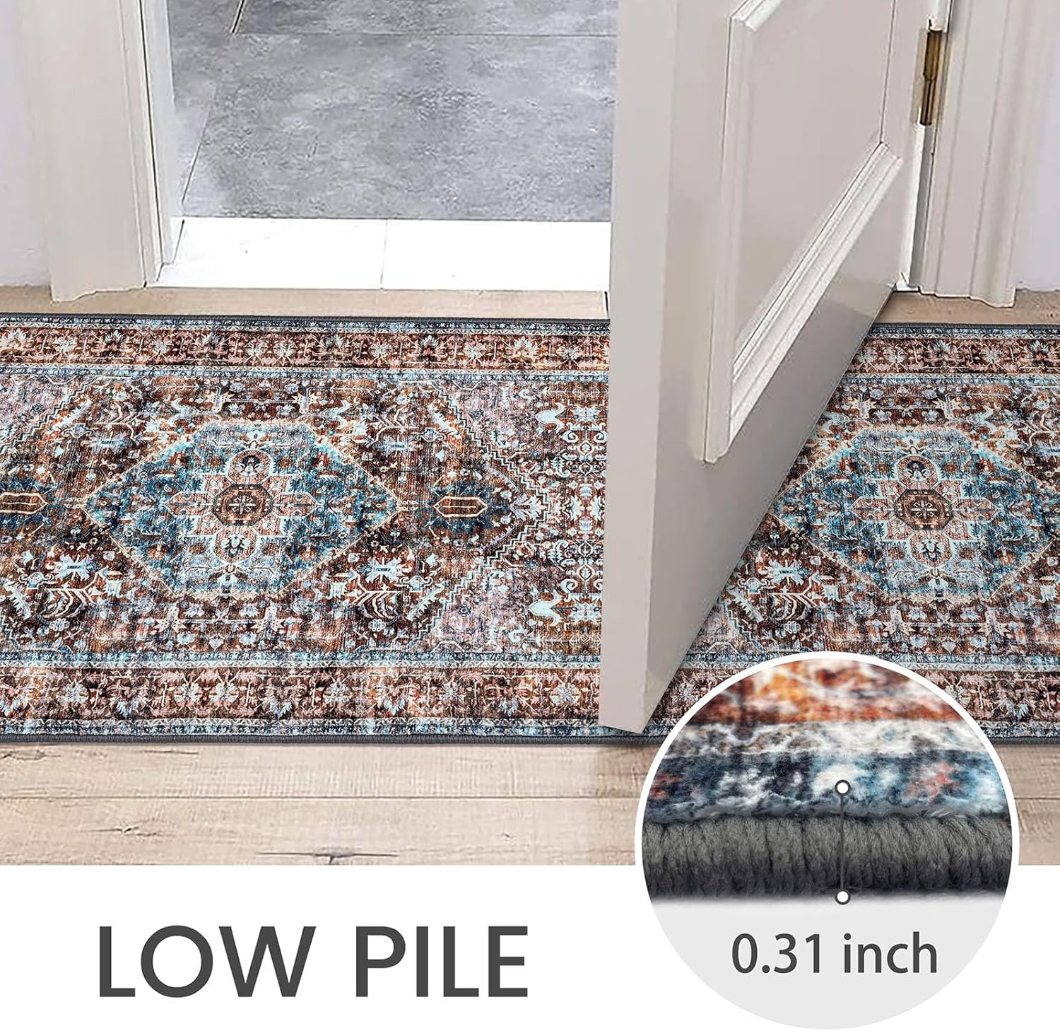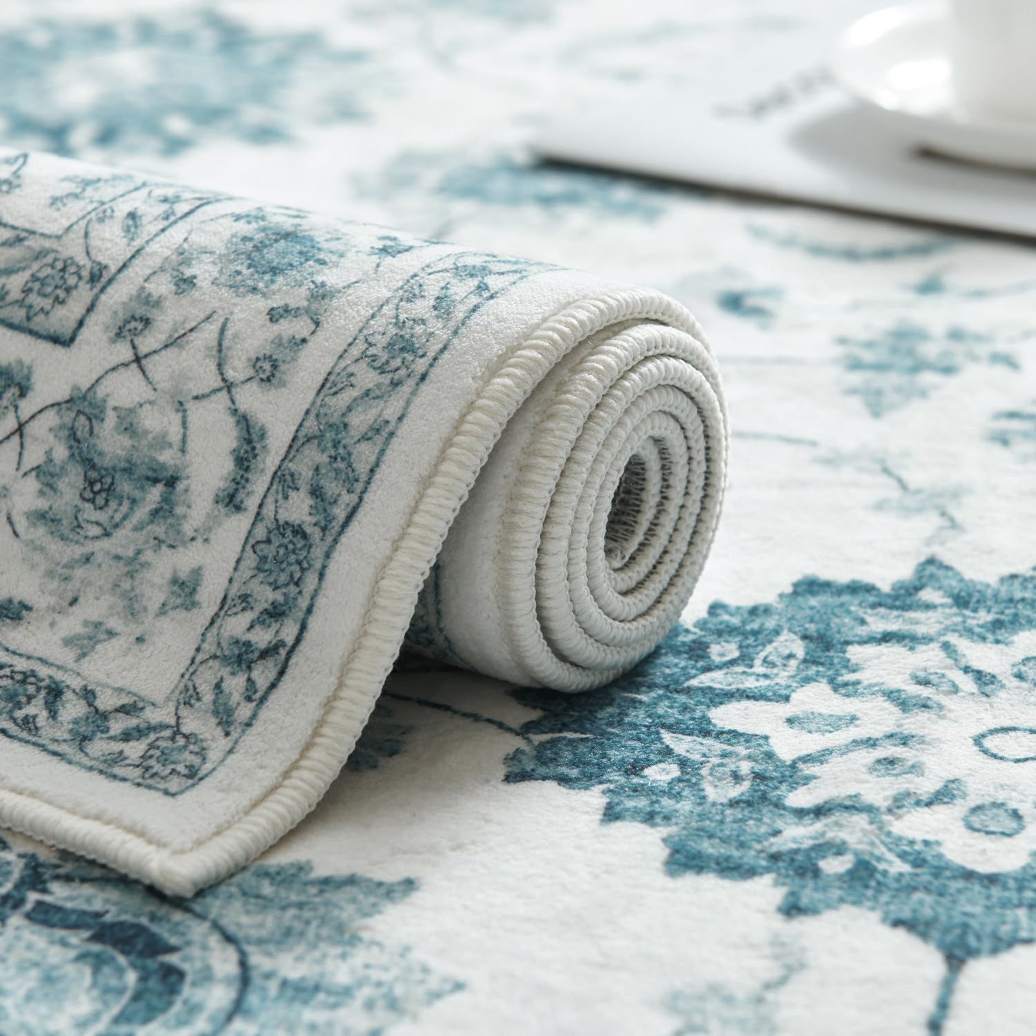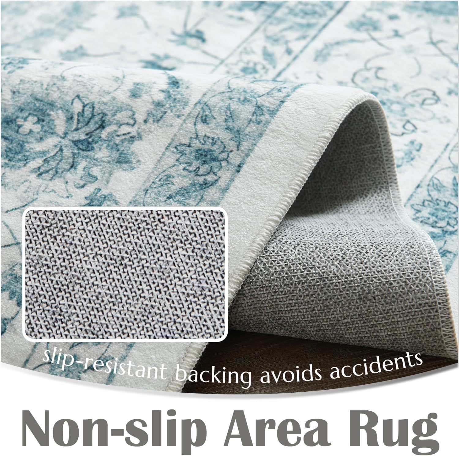 jinchan Area Rug 5x7 Oriental Washable Rug Vintage Floral Rug Non Slip Retro Distressed Rug Thin Country Boho Rug Floor Cover Farmhouse Rug Carpet for Kitchen Living Room Bedroom Dining Room Blue