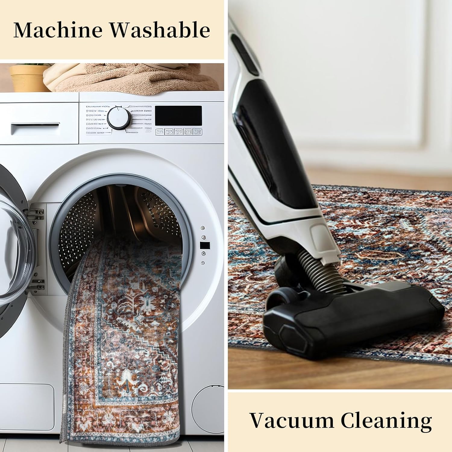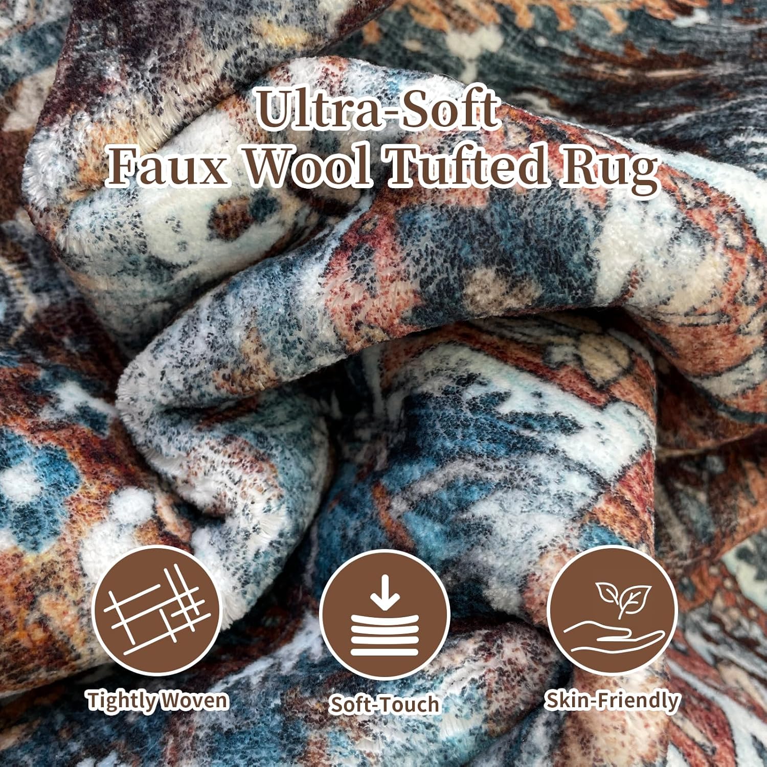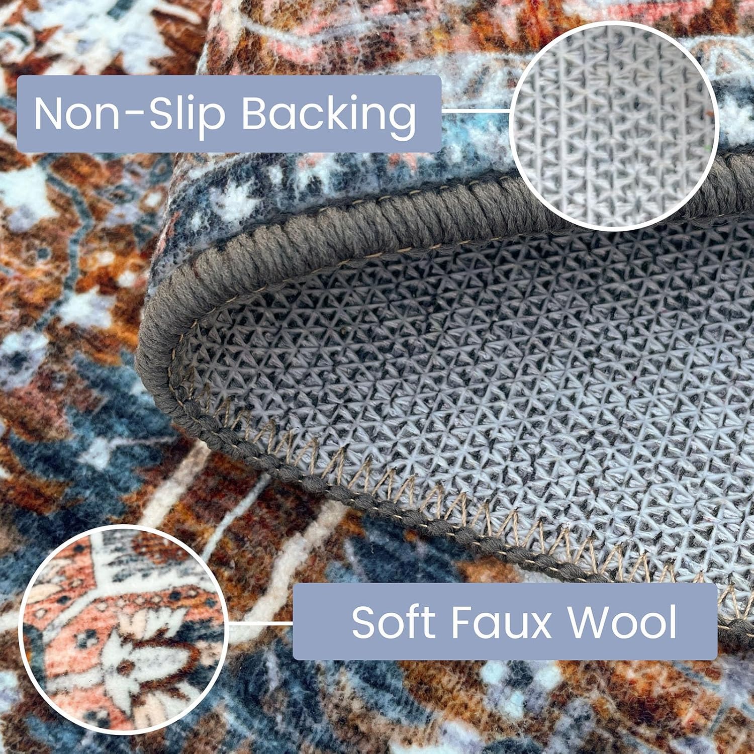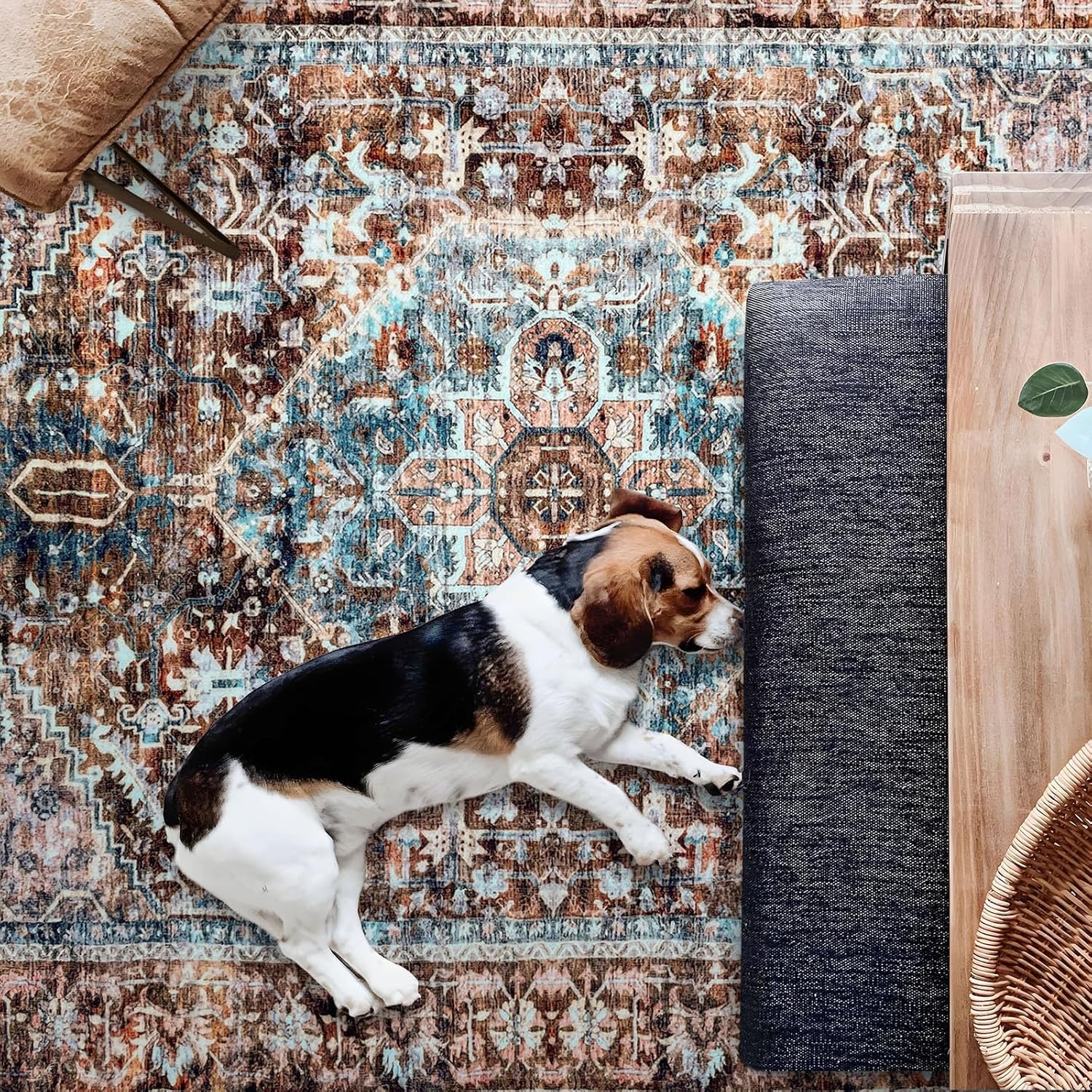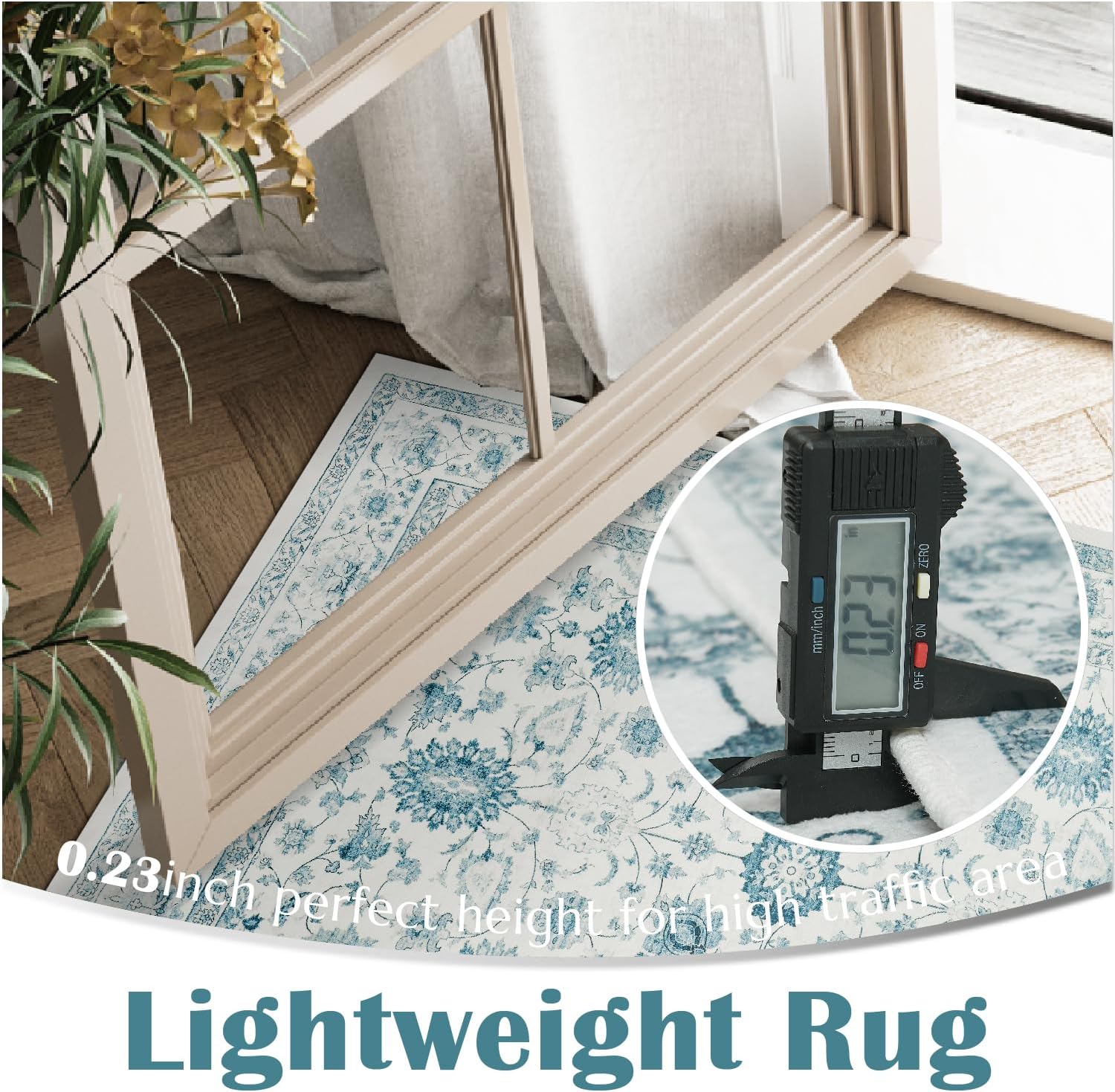 jinchan Area Rug 5x7 Oriental Washable Rug Vintage Floral Rug Non Slip Retro Distressed Rug Thin Country Boho Rug Floor Cover Farmhouse Rug Carpet for Kitchen Living Room Bedroom Dining Room Blue