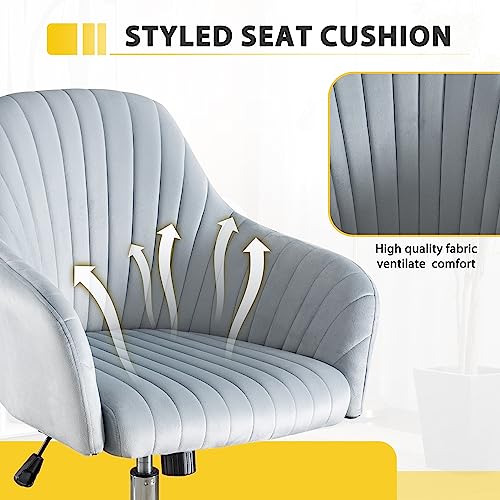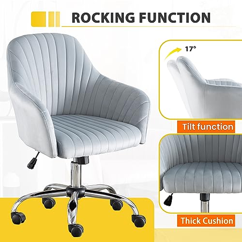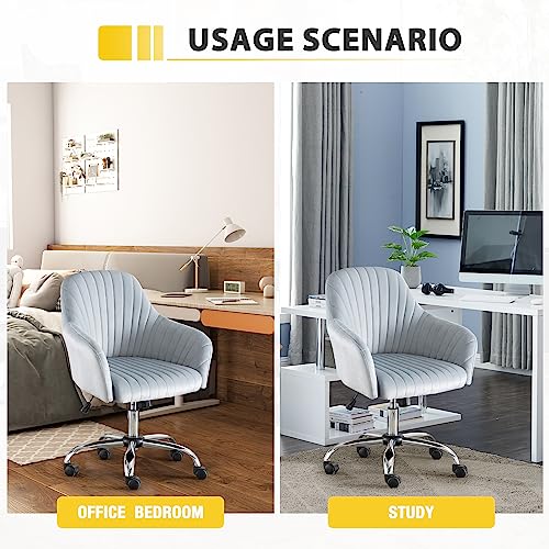 Modern Home Office Chair Computer Desk Chair, Velvet Swivel Vanity Chair,Upholstered Rolling Desk Chair with Wheels and Adjustable Height for Home Office Working or Studying (Pink)
