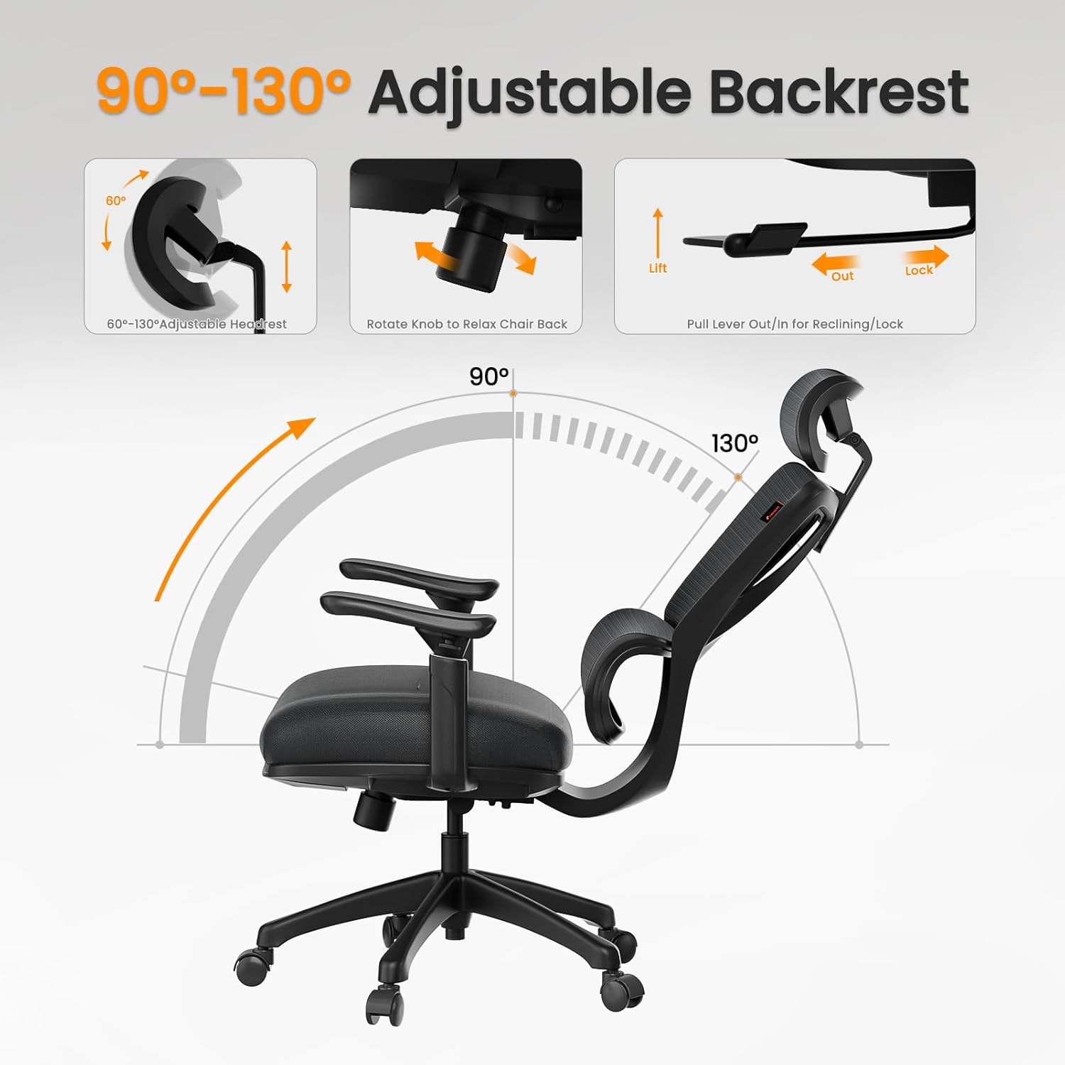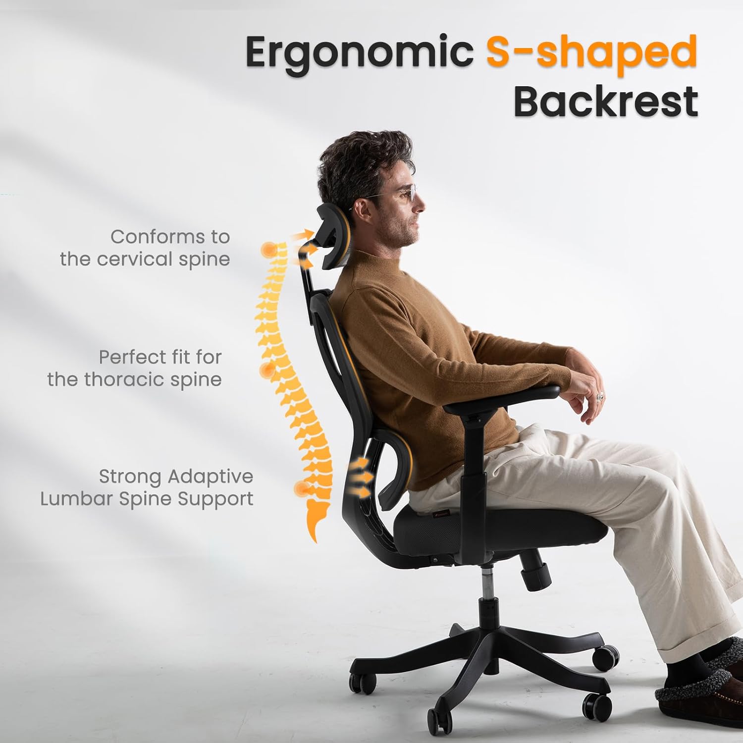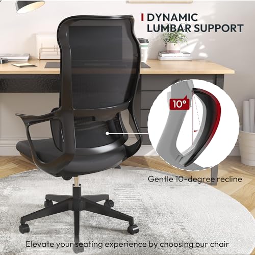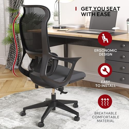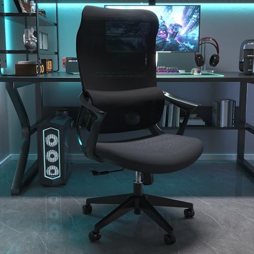 ProtoArc Ergonomic Office Chair with Wheels, Mesh Desk Chair with Adjustable 3D Arms and Headrest Adaptive Lumbar Support for Home Office Desk Chair with Wheels ErgoChair 100 (Black)
