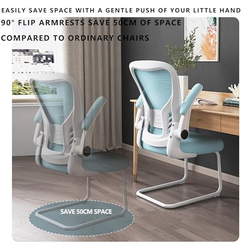Home Office Task Chair,Gaming Desk Breathable Mesh Small Criss Cross Chair,Flip-up Armrest,NO Wheels Executive,for Study,Working,Executive,living,bedroom,hotel,dining Room (Blue,A)