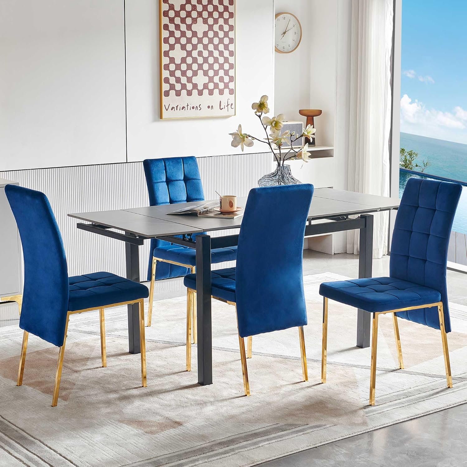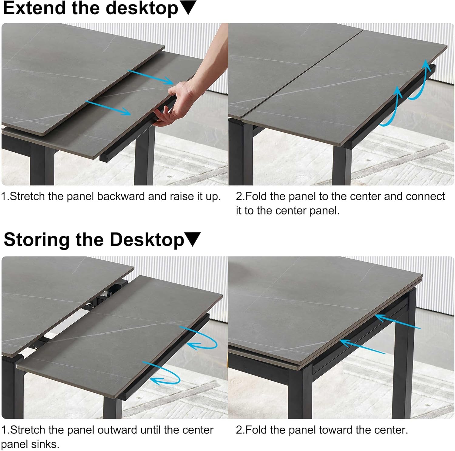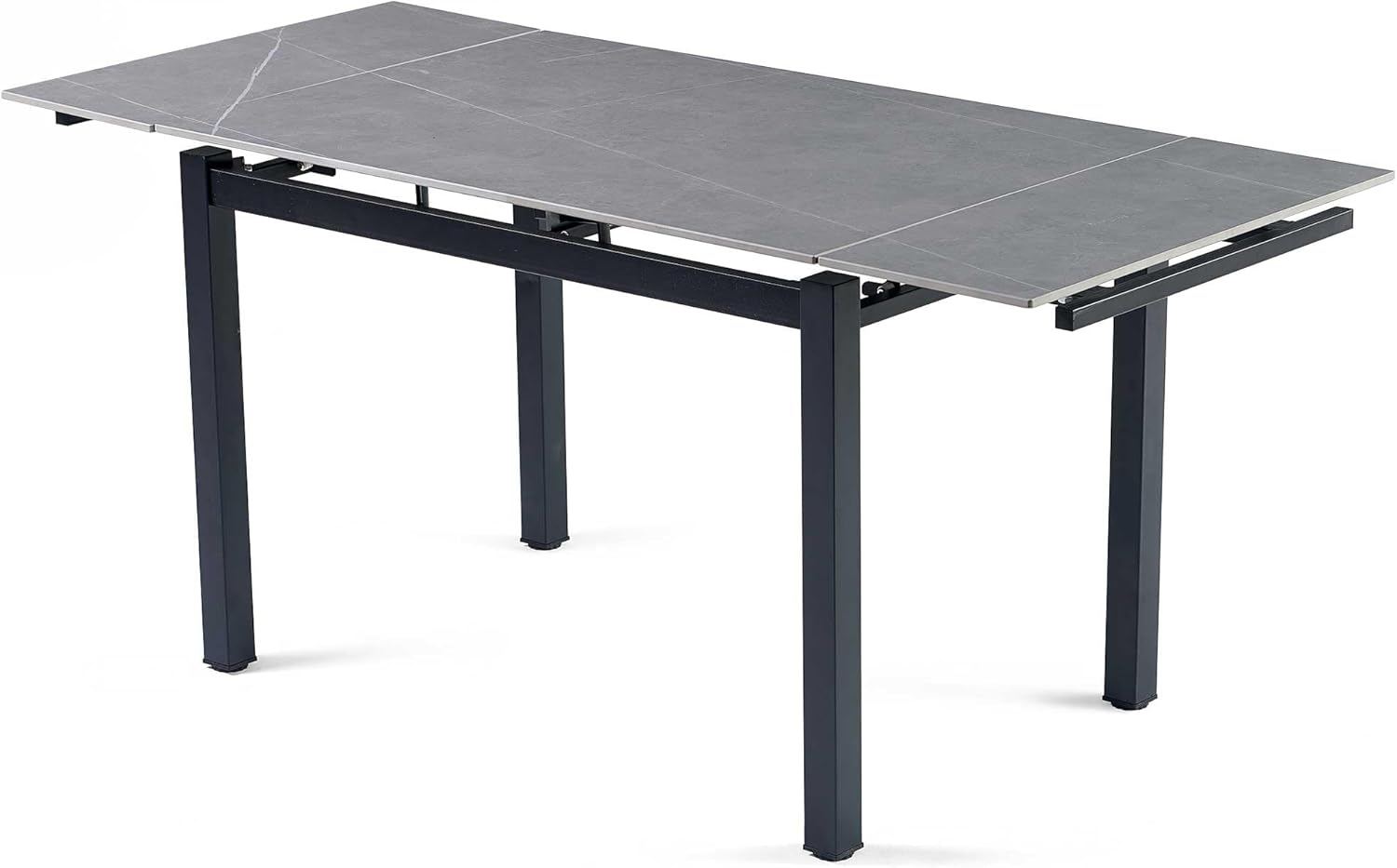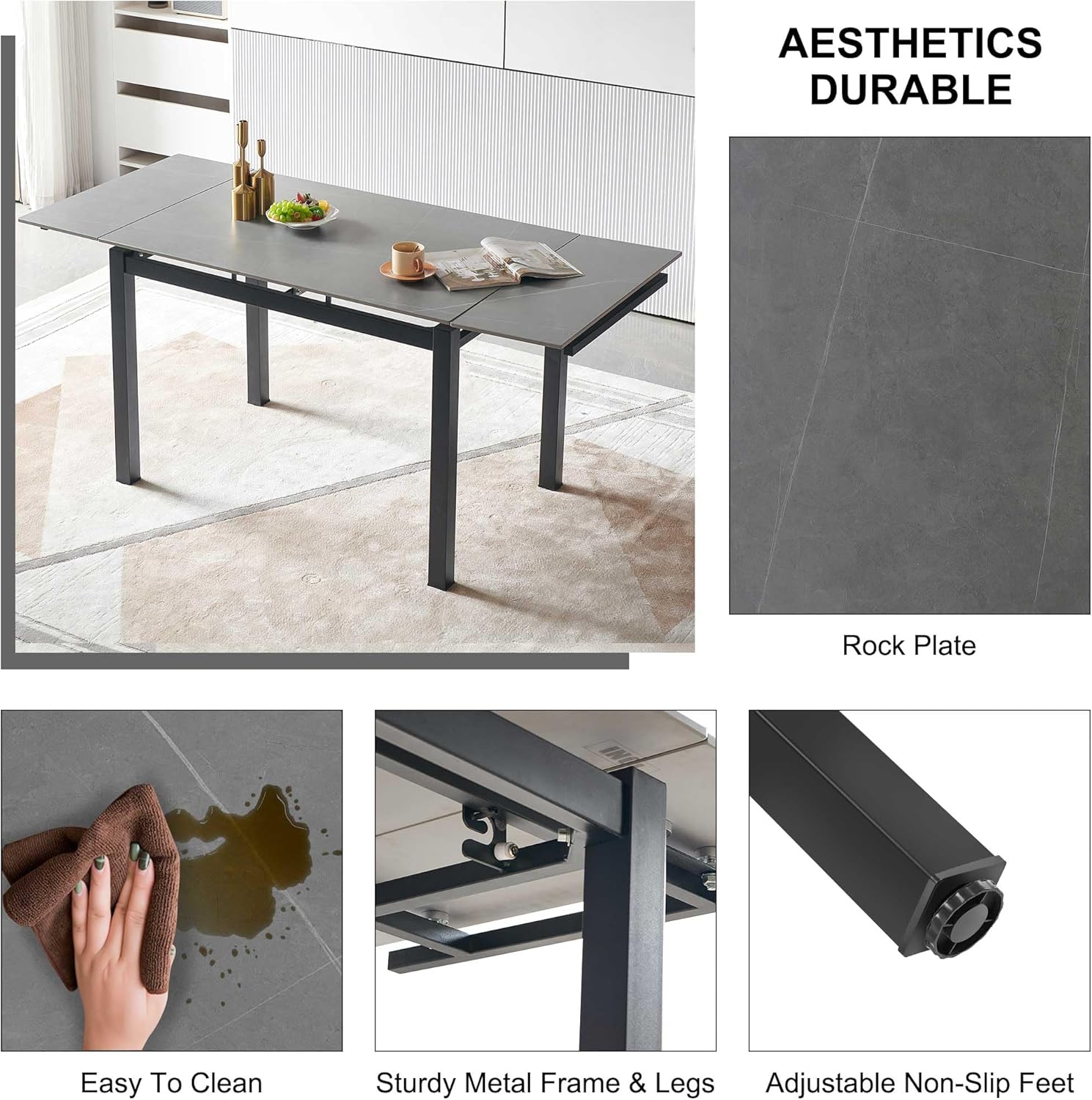 Grey Sintered Stone Modern Rectangular Expandable Dining Room Table for Space-Saving Kitchen Space 4-6 Outdoor Patio Dining Table