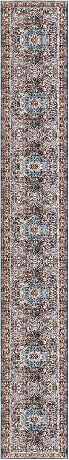 KOZYFLY Runners for Hallways 2.6x18 Ft Extra Long Washable Kitchen Runner Rug Boho Runner Rug for Entryway Indoor Brown Oriental Faux Wool Stair Runner Rug Floor Carpet Runner for Stair Kitchen Hall