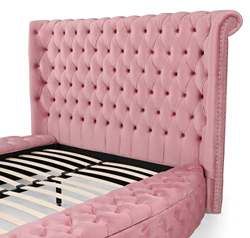 Better Home Products Elizabeth Velvet King Bed in Pink Finish (King)