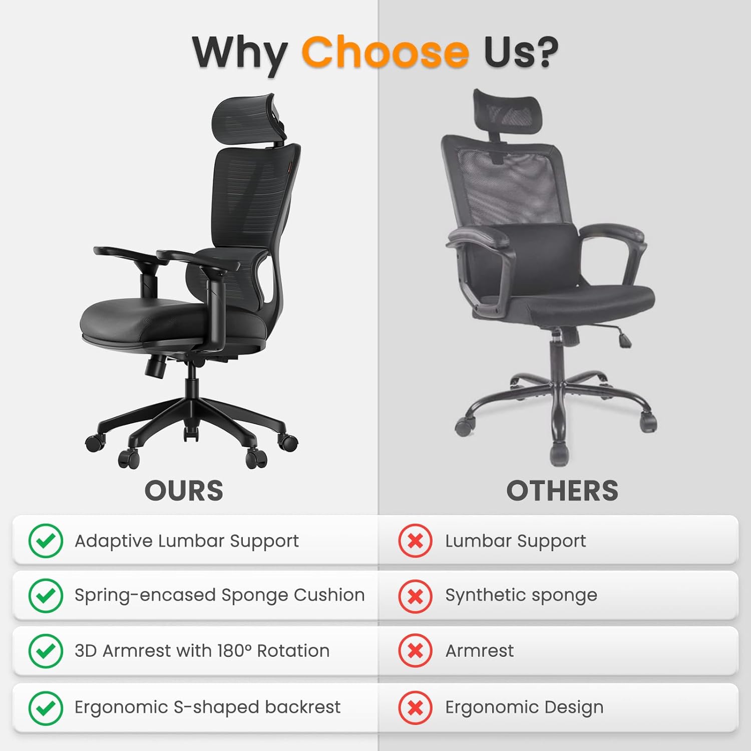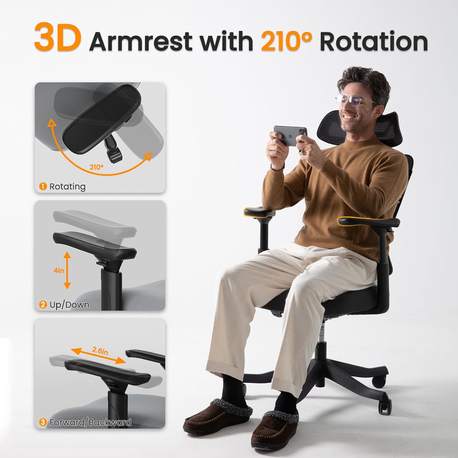 SANODESK OS4-V2 Office Chair,Ergonomic Computer Chairs with Headrest,Lumbar Support and Tilt Function,Mesh Home Office Desk Chairs with Flip-up Armrest for Video Game,Playing Guitar and Working White