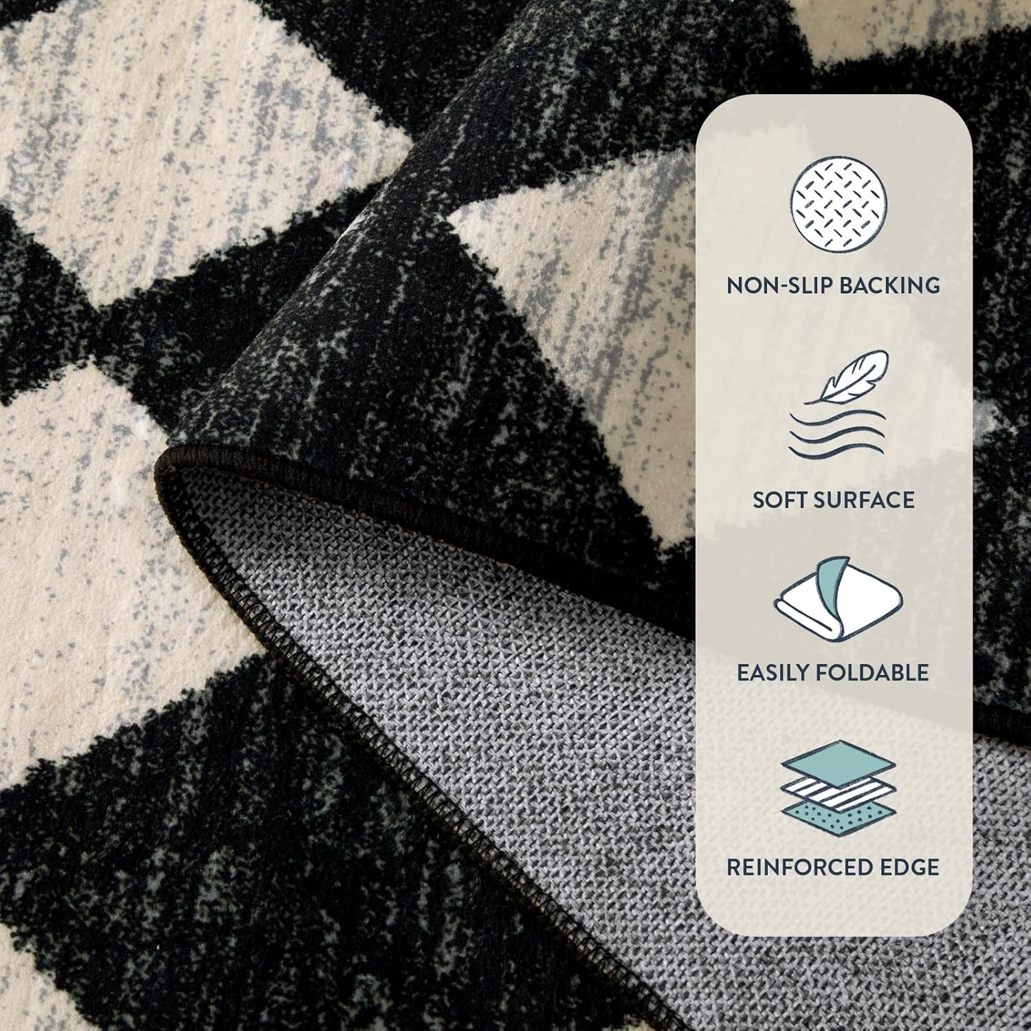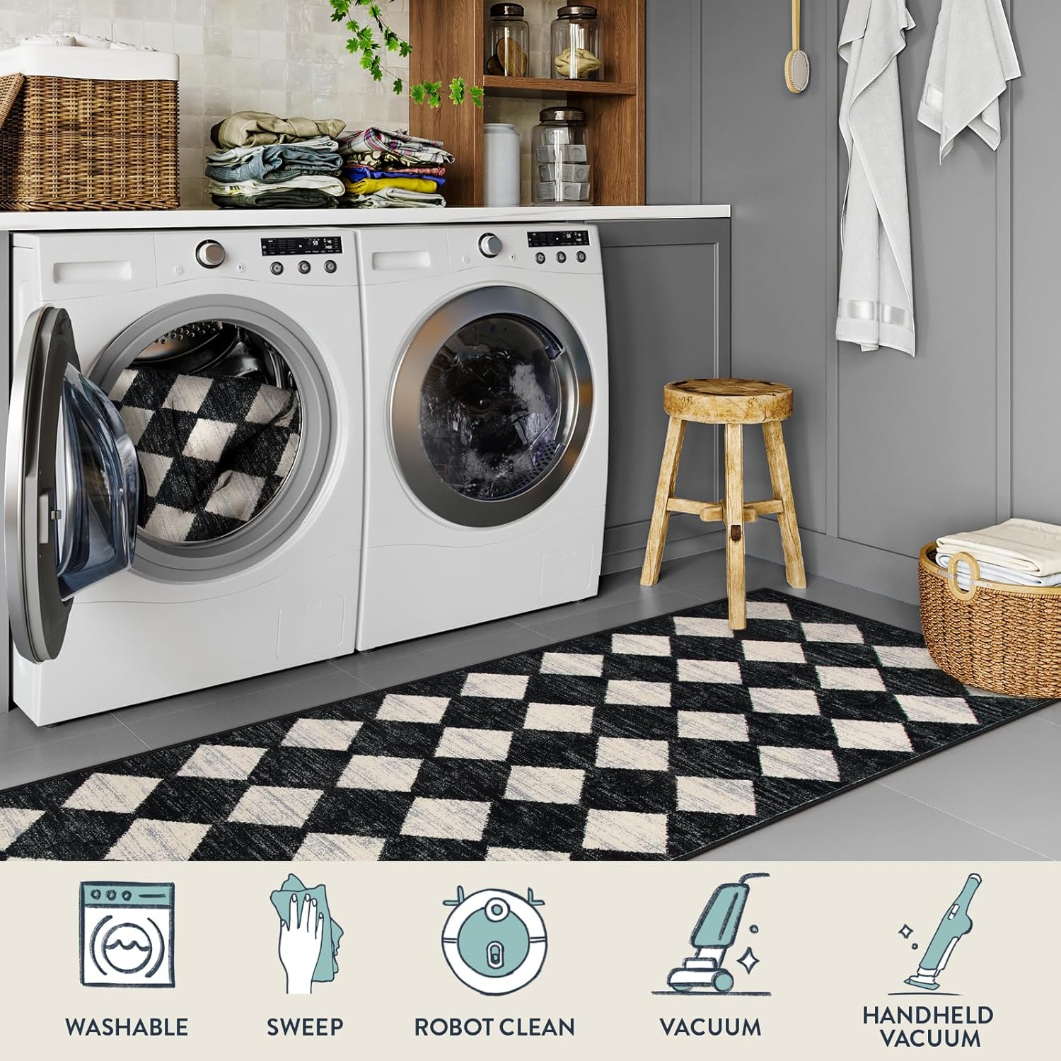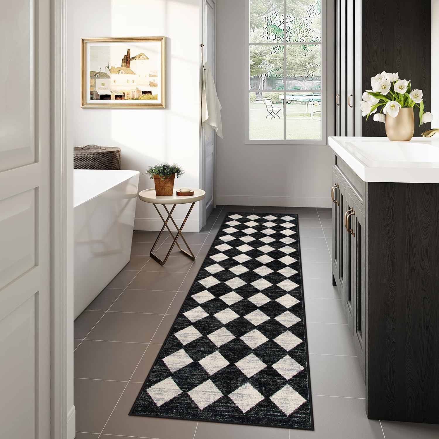 Lahome Checkered Washable Rug Runners for Hallways Non Slip,2x10 Black Kitchen Bathroom Runner Rug,Trellis Low Pile Indoor Carpet Runner for Bedroom Entryway Foyer(2'x10',Black)