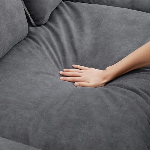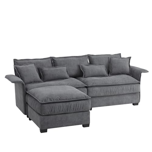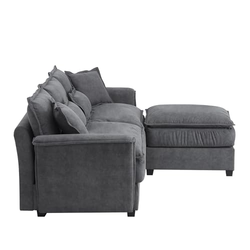 WILLIAMSPACE 95" Sectional Sofa Couch for Living Room, Modern Upholstered L Shape Sofa 4-seat Couch with Double Cushions & Removable Ottoman, Luxury Furniture for Apartment (Dark Grey)