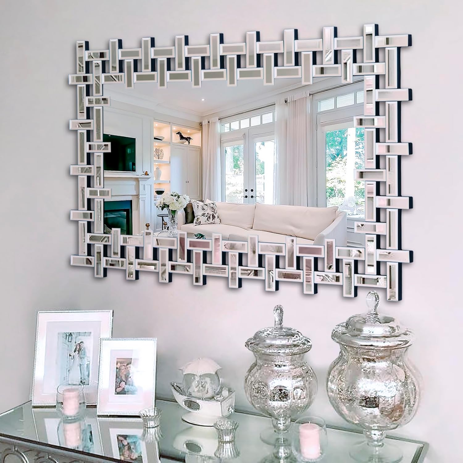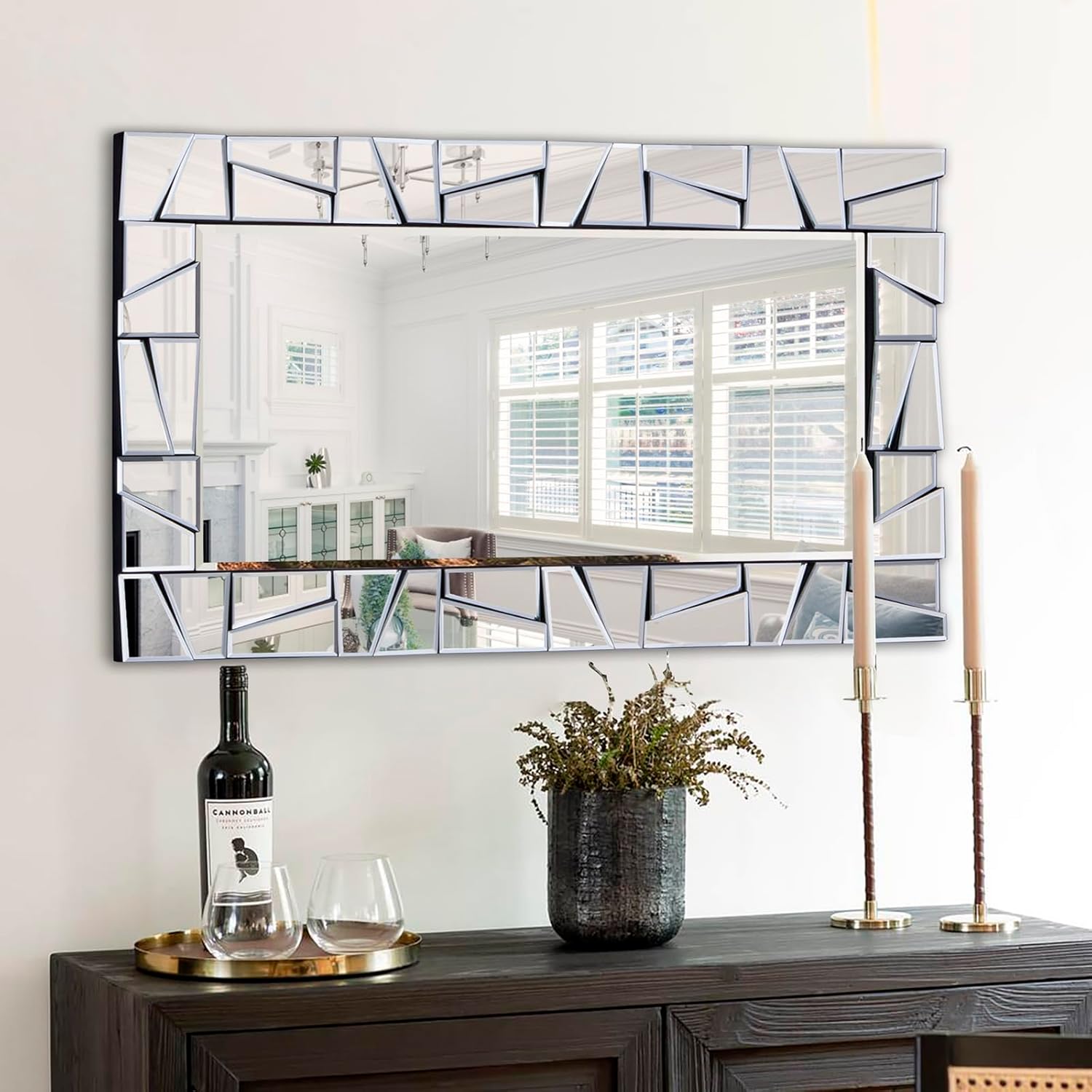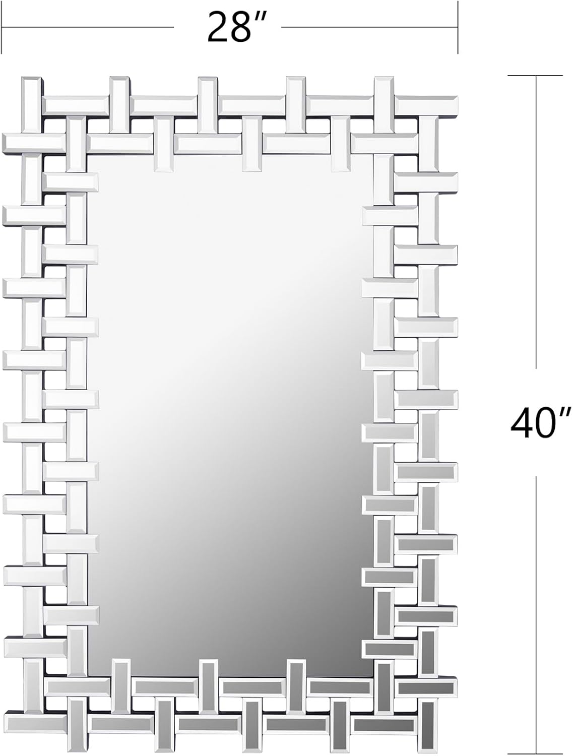 Chende Large Living Room Mirror for Decor, 44'' x 24'' Modern Decorative Wall Mirrors with Uneven Glass Frame, Rectangle Elegant Mirror with Glass Beveled Edge for Entryway, Dining Room, Bedroom