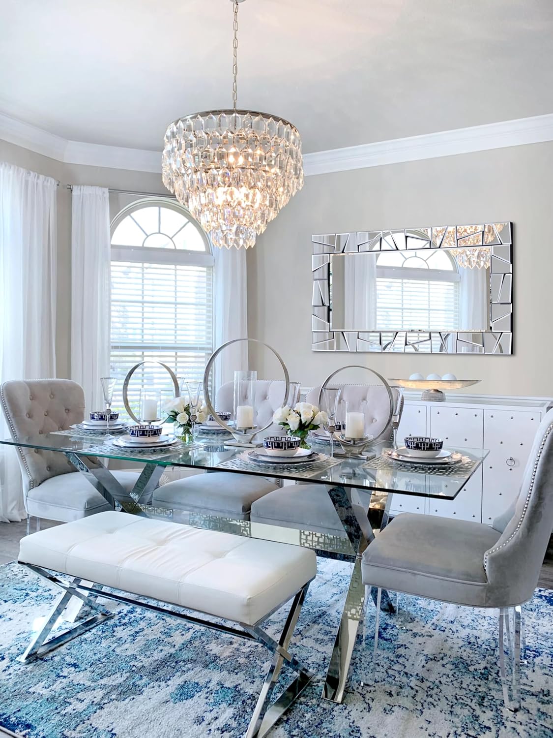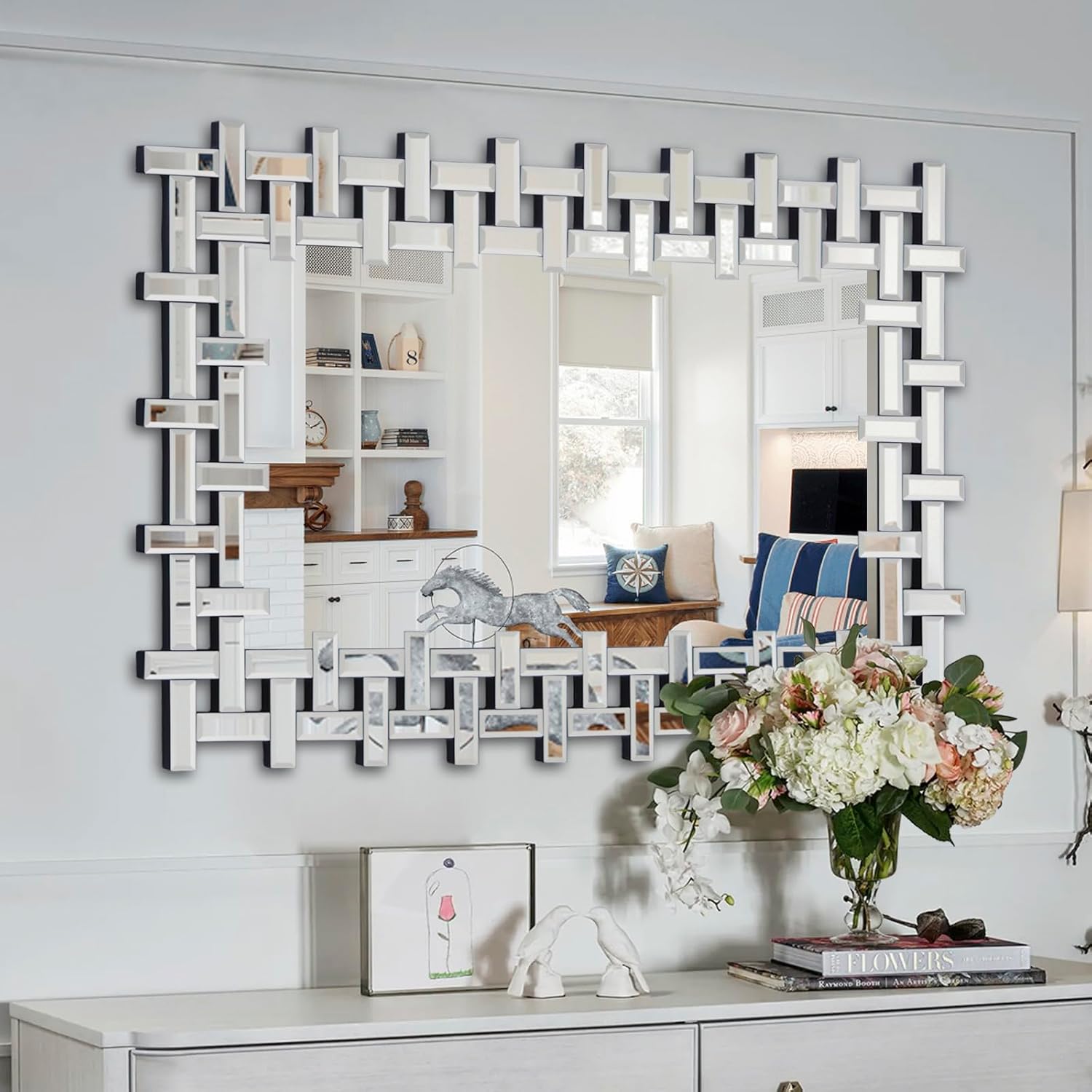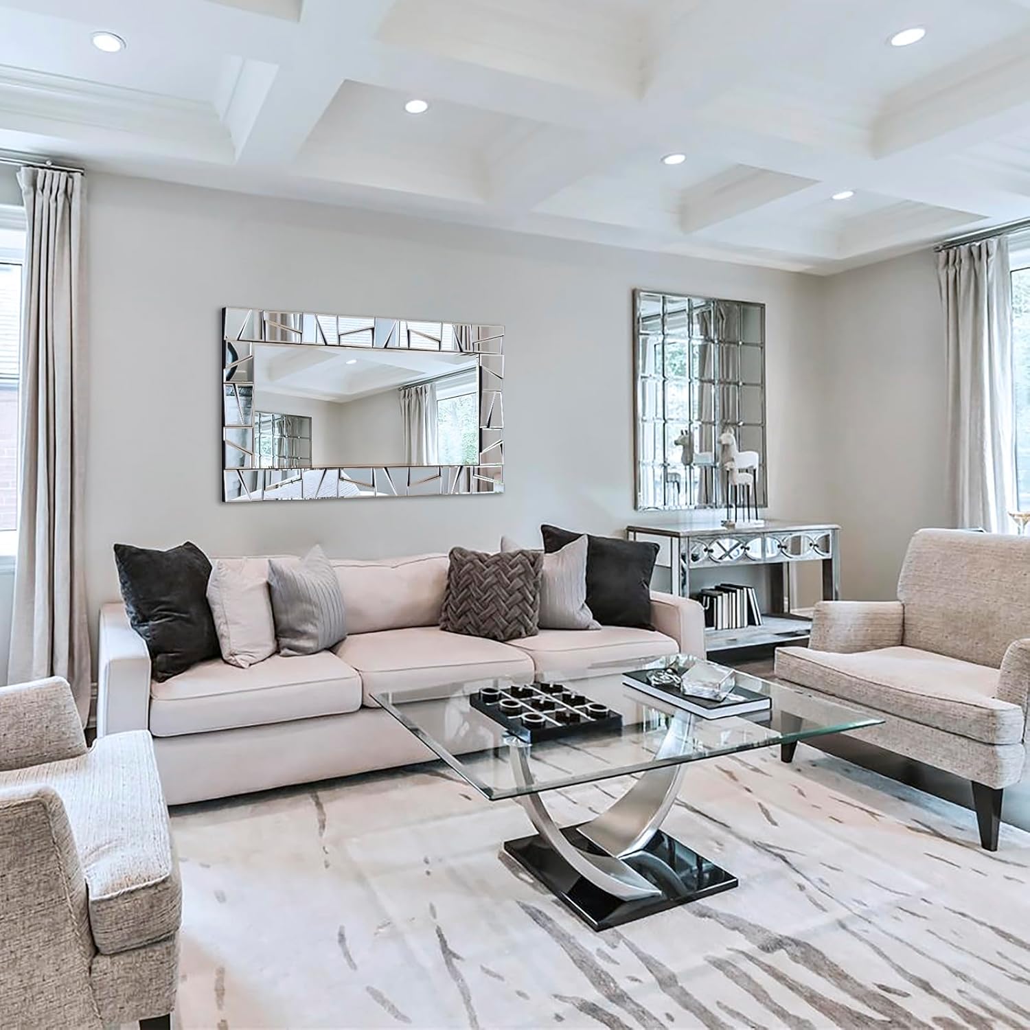 Chende Large Living Room Mirror for Decor, 44'' x 24'' Modern Decorative Wall Mirrors with Uneven Glass Frame, Rectangle Elegant Mirror with Glass Beveled Edge for Entryway, Dining Room, Bedroom