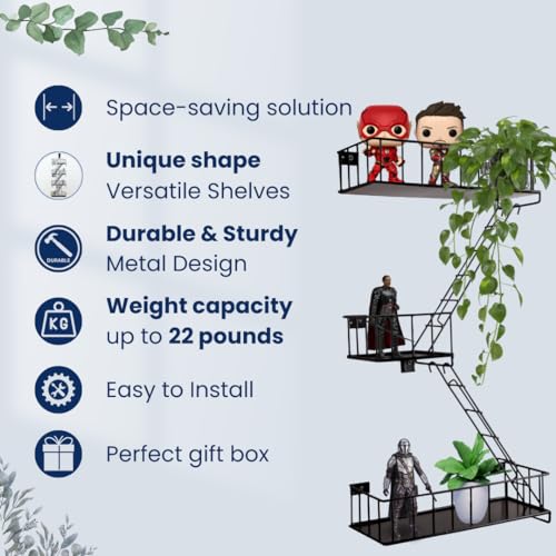 Fire Escape Ladder Shelf - New York Inspired 4 Tier Metal Shelf with Screws & Screwdriver, for Home Décor Organizer and Action Figure Display