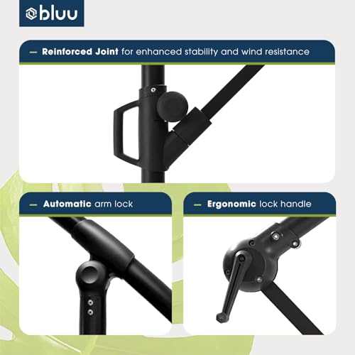BLUU 10 FT Patio Offset Umbrella Outdoor Cantilever Umbrella Hanging Umbrellas, Fade Resistant Crank & Cross Base (Wood, 10 FT WITH LIGHTS&COVER)