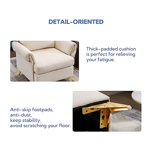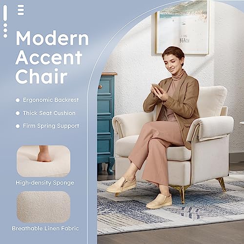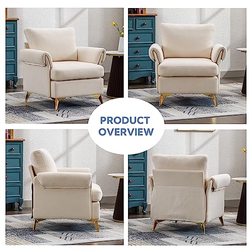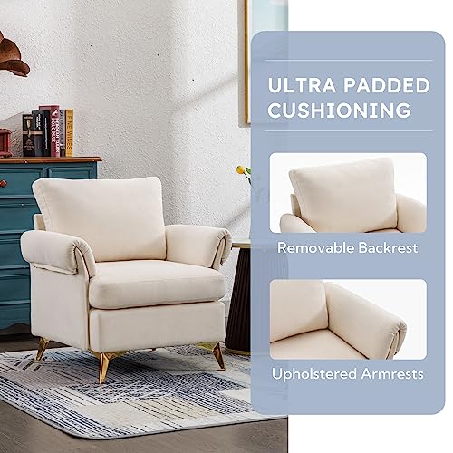 Bonzy Home Accent Chair Set of 2, Comfy Washable Fabric Armchair with Solid Metal Legs, Upholstered Single Sofa Reading Chairs for Living Room Bedroom Office, White