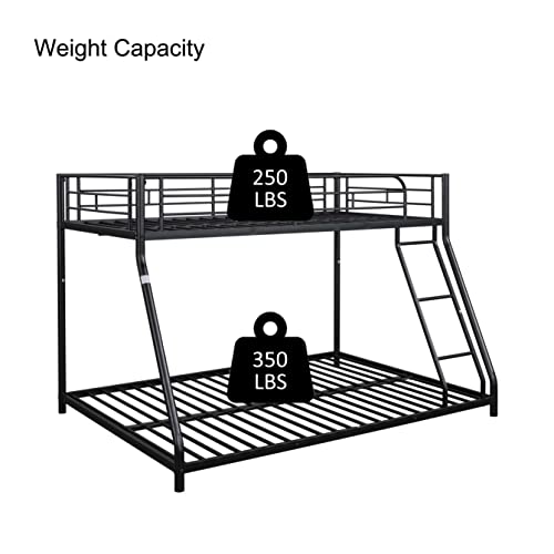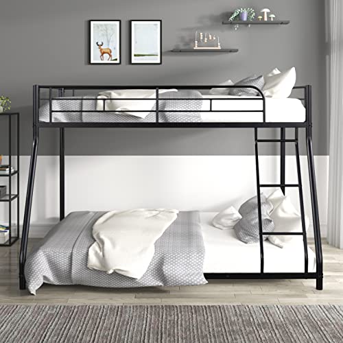 Metal Twin Over Full Bunk Bed with Ladder and Sturdy Steel Metal Bed Frame,Low Bunkbeds with Slat Support for Bedroom Guest Room Small Living Space, Space Saving, No Box Spring Needed (Black)