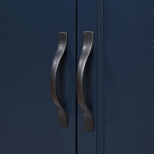 40" Retro Pine Large Capacity Double Door Storage Cabinet with Detachable Shelves for 3 Different Heights, Ideal for Living Room, Bedroom, Entrance, Corridor and Sitting Area (Navy Blue + Pine)