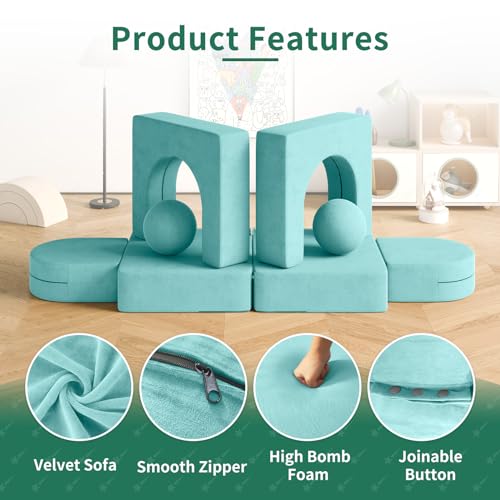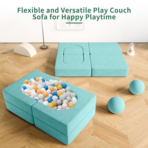 wanan 8PCS Kids Sofa, Kids Modular Couch Toddler with 2 Balls, Kids Couch Play Set 8 in 1 Baby Foam Sofa Kids Couch (Blueberry)
