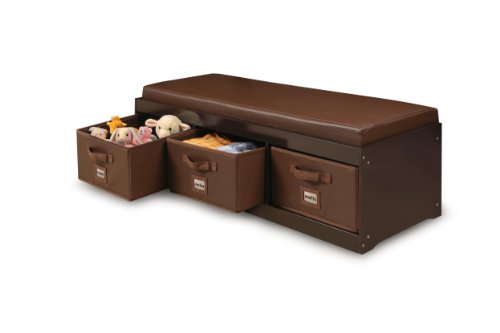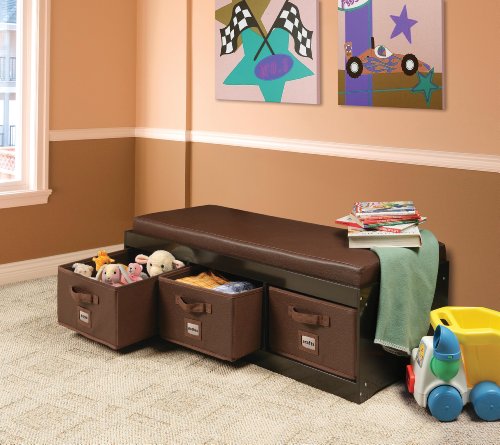 Badger Basket Kid's Padded Toy Storage Bench with Cushion and Three Fabirc Bins - Gray