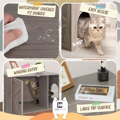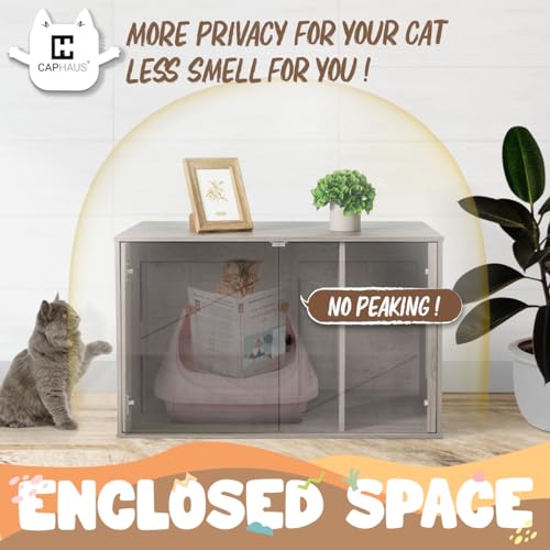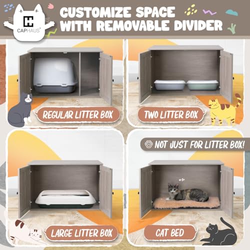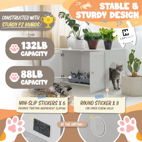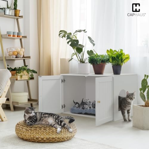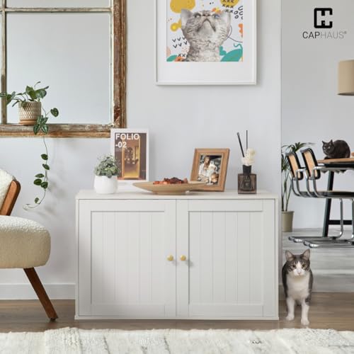Fencer Wire Cat Litter Box Furniture with Divider, Wooden Indoor Cat House with Double Doors, Flip-top Hidden Cat Washroom Enclosure, Metal Frame Enclosed Cat Boxes, Cabinet for Large Cat, White