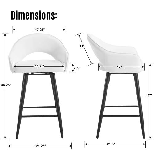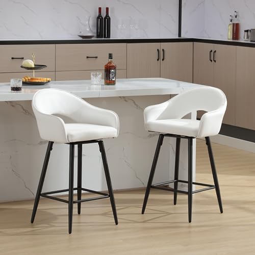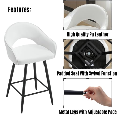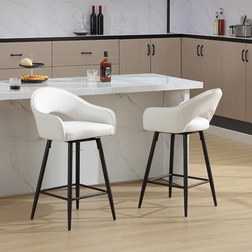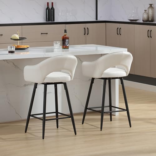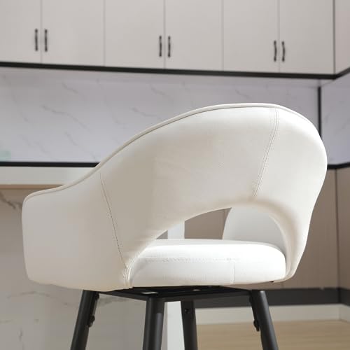 LukeAlon PU Leather Swivel Counter Stools Set of 6, Open Back 27" Seat Height Low Bar Stools with Metal Legs Modern Kitchen Stools with Footrest for Home Bar Dining Room, Cream White