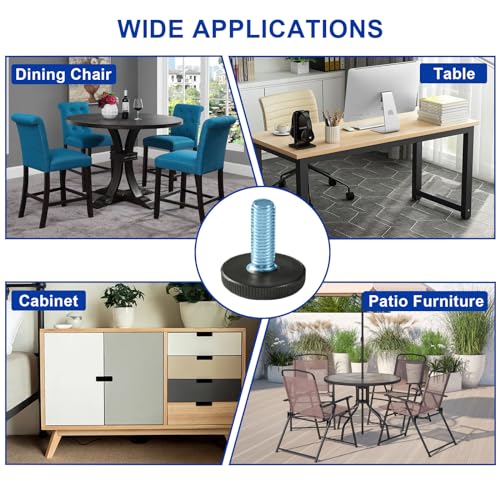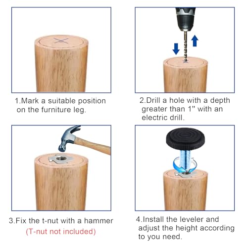 WAFJAMF 24 PCS M8 Thread Adjustable Furniture Levelers Screw in Threaded, Steel Screw Feet Leveling Legs Screw On w/T-Nuts Glide for Table, Chair, Furniture Leg (M8 Thread)…