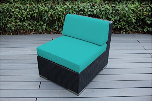 Ohana 7-Piece Outdoor Patio Furniture Sectional Conversation Set, Black Wicker with Turquoise Cushions - No Assembly with Free Patio Cover