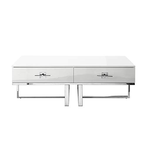Nicole Miller Coffee Table - White/Gold | Design: Mandisa | 2 Drawers | Hight Gloss Lacquer Finish