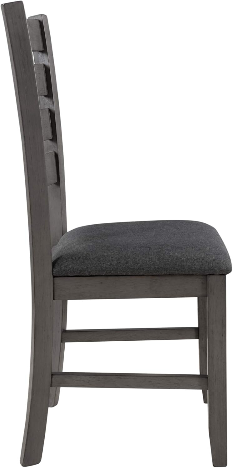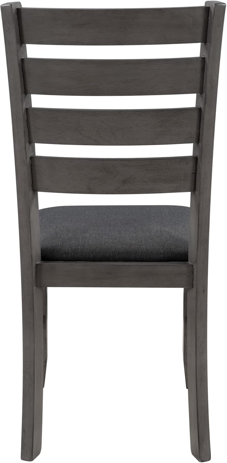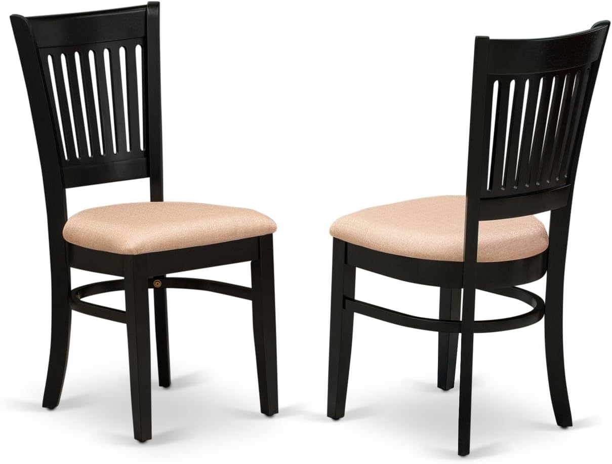 Mediterranean Magic 5-Pc Wooden Dining Table Set 4 Wood Dining Chair with Slatted Back and A Linen Fabric Seat and Butterfly Leaf Dining Table with Rectangular Top and 4 Legs- Black Finish