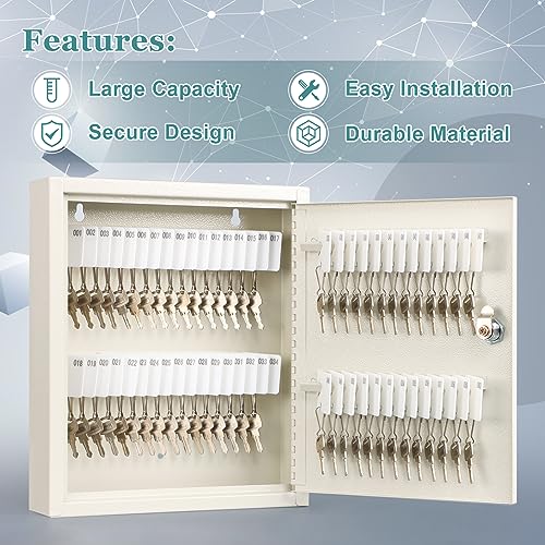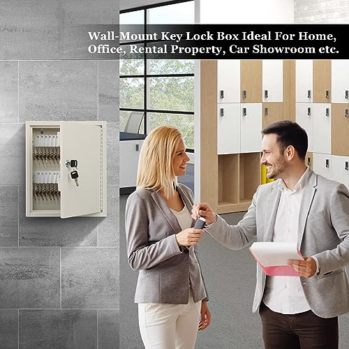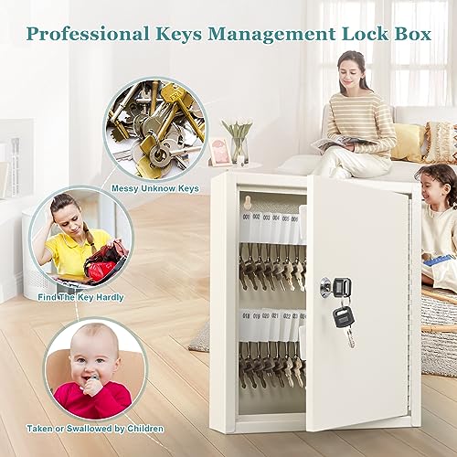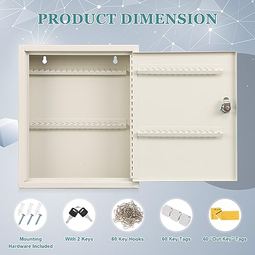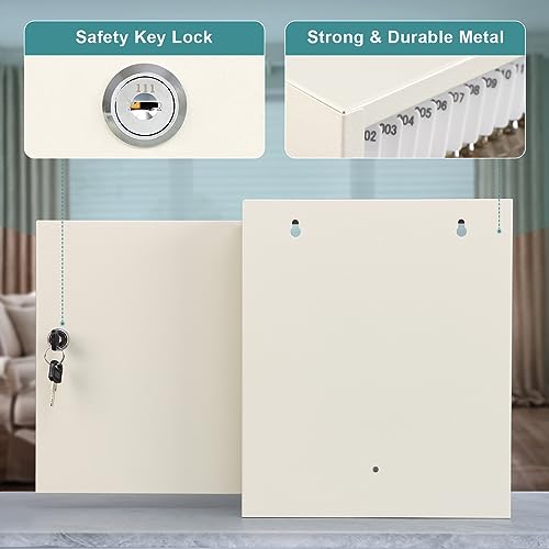 KYODOLED Key Storage Lock Box with Key, Locking Key Cabinet, 100 Key Management Wall Mount with Key Lock, Key Hooks & Tags Key Labels, 3.1" D x 17.1" W x 14.1" H (Black 100 key)