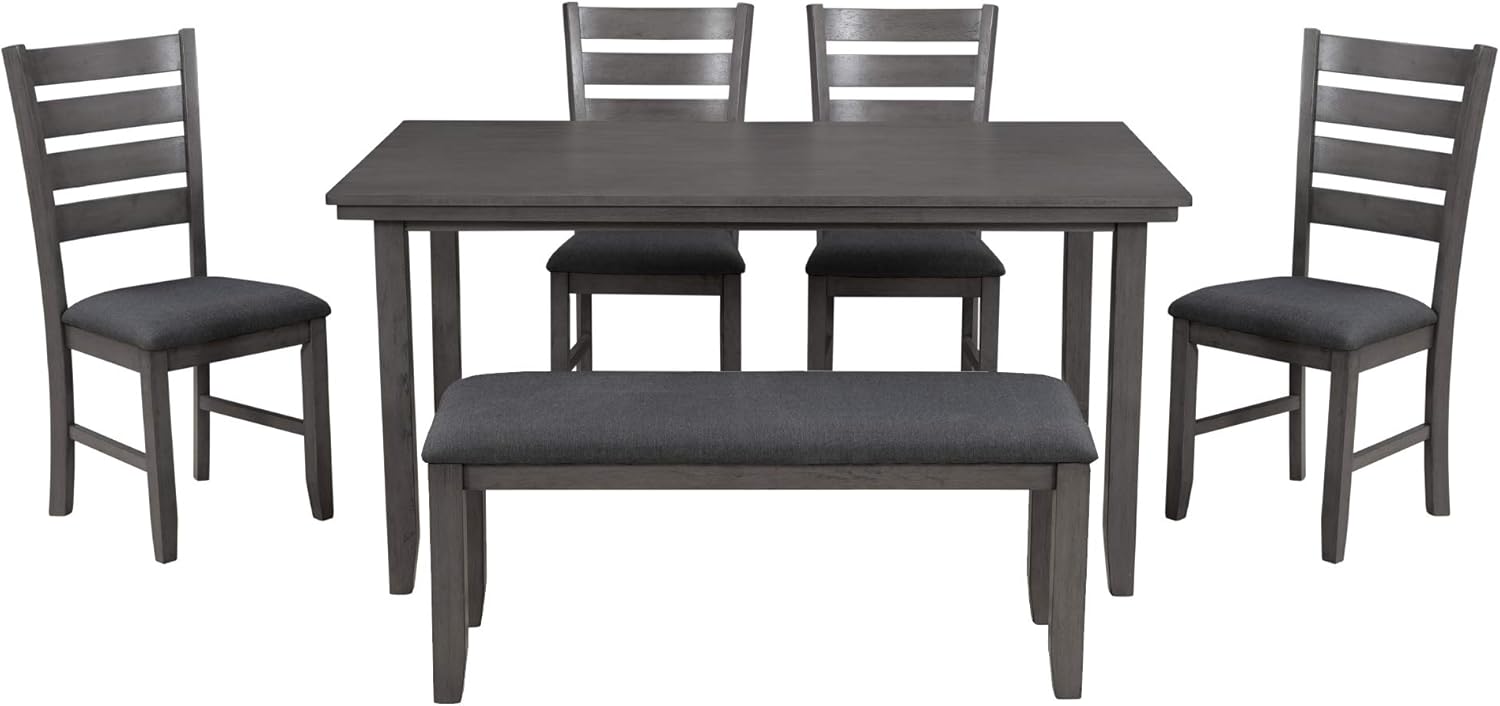 Wooden 6-Piece Upholstered Furniture Sets Include 1 Table, 4 Chairs with Soft Cushions and Padded Bench for Home Apartment Kitchen & Dining Room,Gray+Grey