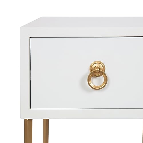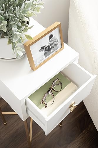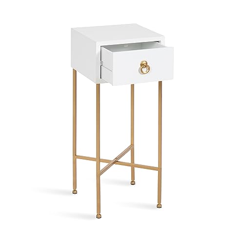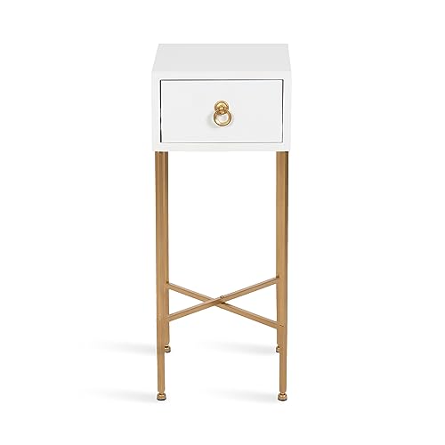 Kate and Laurel Decklyn Decorative Glam Tea Table, 12 x 12 x 30, Navy Blue and Gold, Modern Living Room Drink Table with Pull Drawer for Useful Storage