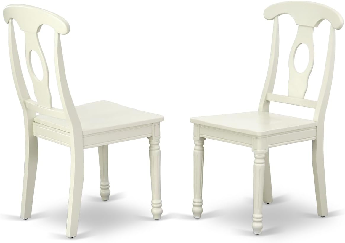 Zen Zone 3-Pc Kitchen Dining Table Set 2 Kitchen Chairs with Slatted Back and A Butterfly Leaf Wooden Seat and Mid Century Dining Table with Rectangular Top and 4 Legs- Linen White Finish