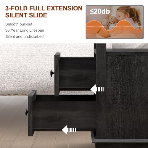 HIFYOBRO Narrow End Table with Flip Top Charging Station Set of 2, Side Table with 2 Drawers, Type-C & USB port & Power outlets, Wooden Storage Cabinet for Living Room and Bedroom