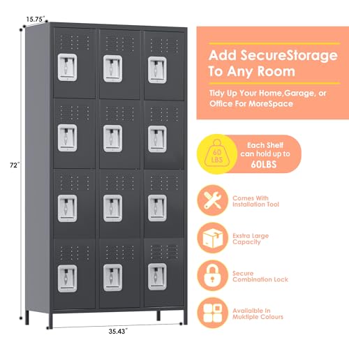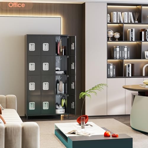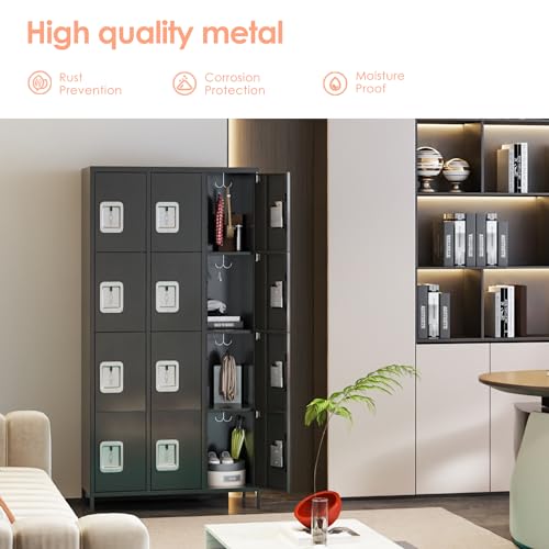Metal Lockers for Employees - 71" Storage Locker Cabinet Large Employee Lockers with 4 Doors - 4 Tier Steel Lockers for Kids Bedroom, Gym, School, Office, Garage (4 Doors, Grey)