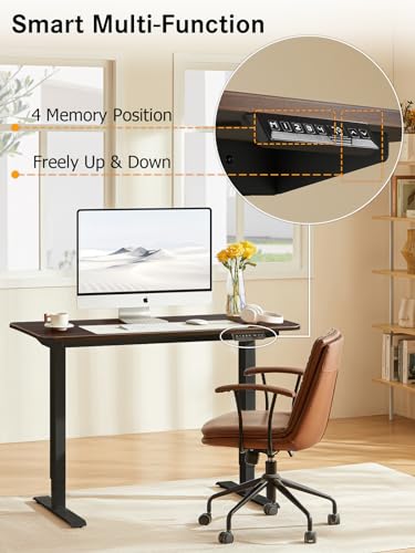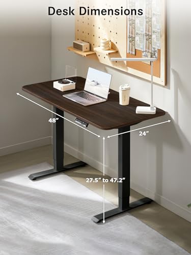 KINGSMITH Electric Height Adjustable Memory Standing Desk, 48 x 24 inch Whole-Piece Desktop Dual Motors Stand up Home Office Ergonomic Workstation (Dark Gray)