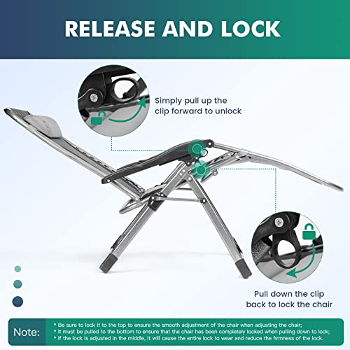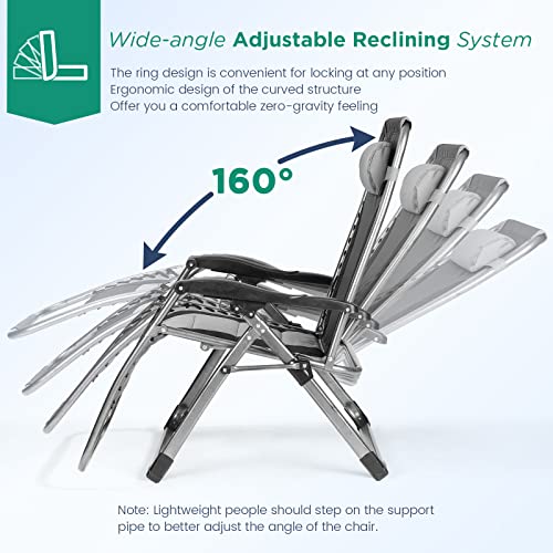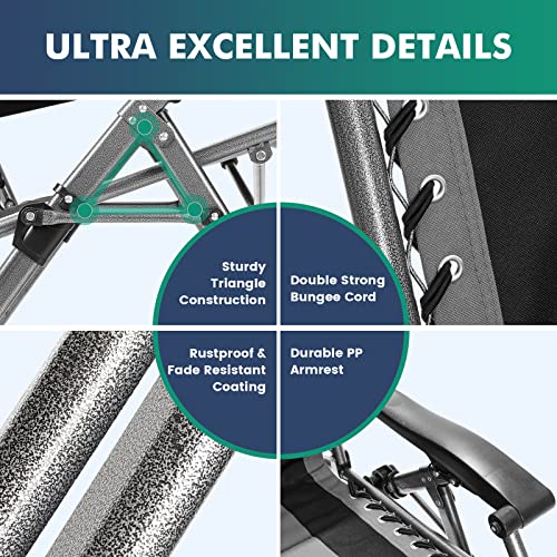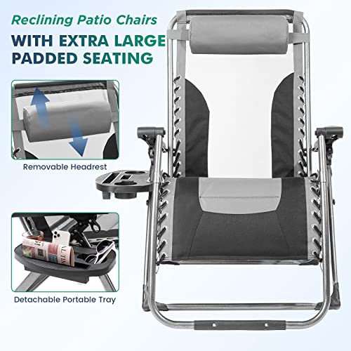 Zero Gravity Chair, Oversized Padded Zero Gravity Recliner Lounge Chair with Removable Headrest & Tray, XL Patio Lounge Chair for Lawn, Yard, Outdoor Recliner Support 450 LBS, Gray+Blue