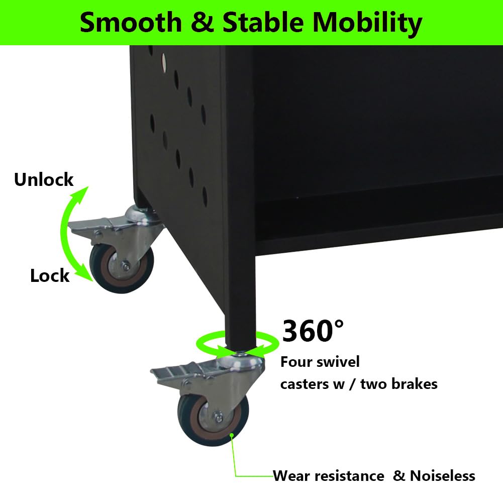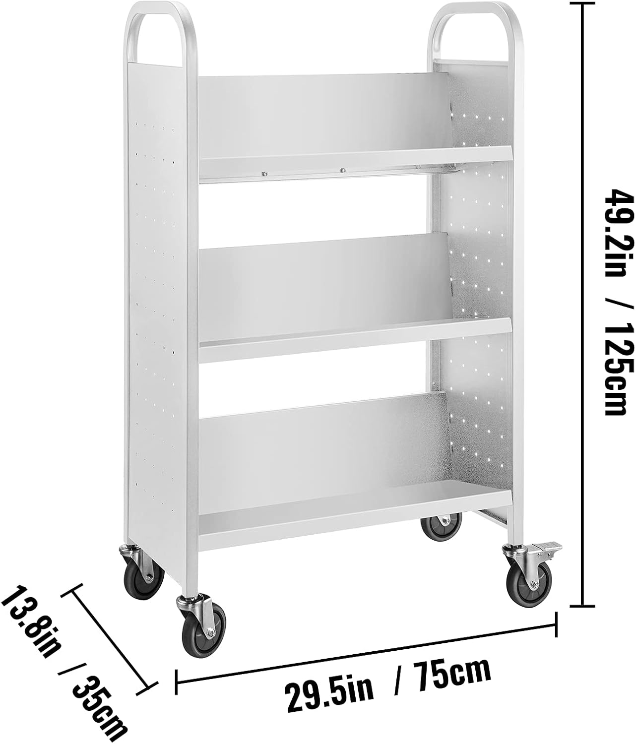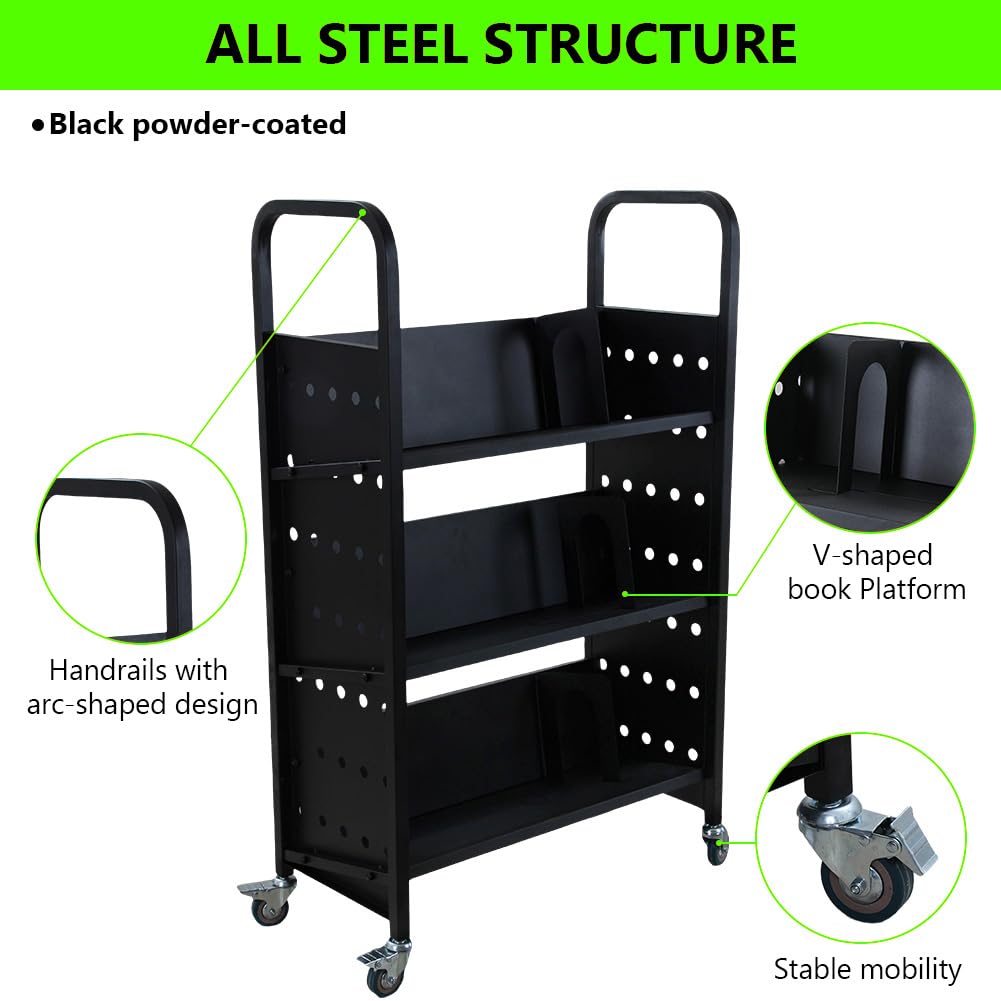 200LBS Book Cart, 30x14x49 V-Shaped Rolling Library Cart with 4 Inch Lockable Wheels for Libraries, Offices, Home Shelves, and Schools, Black