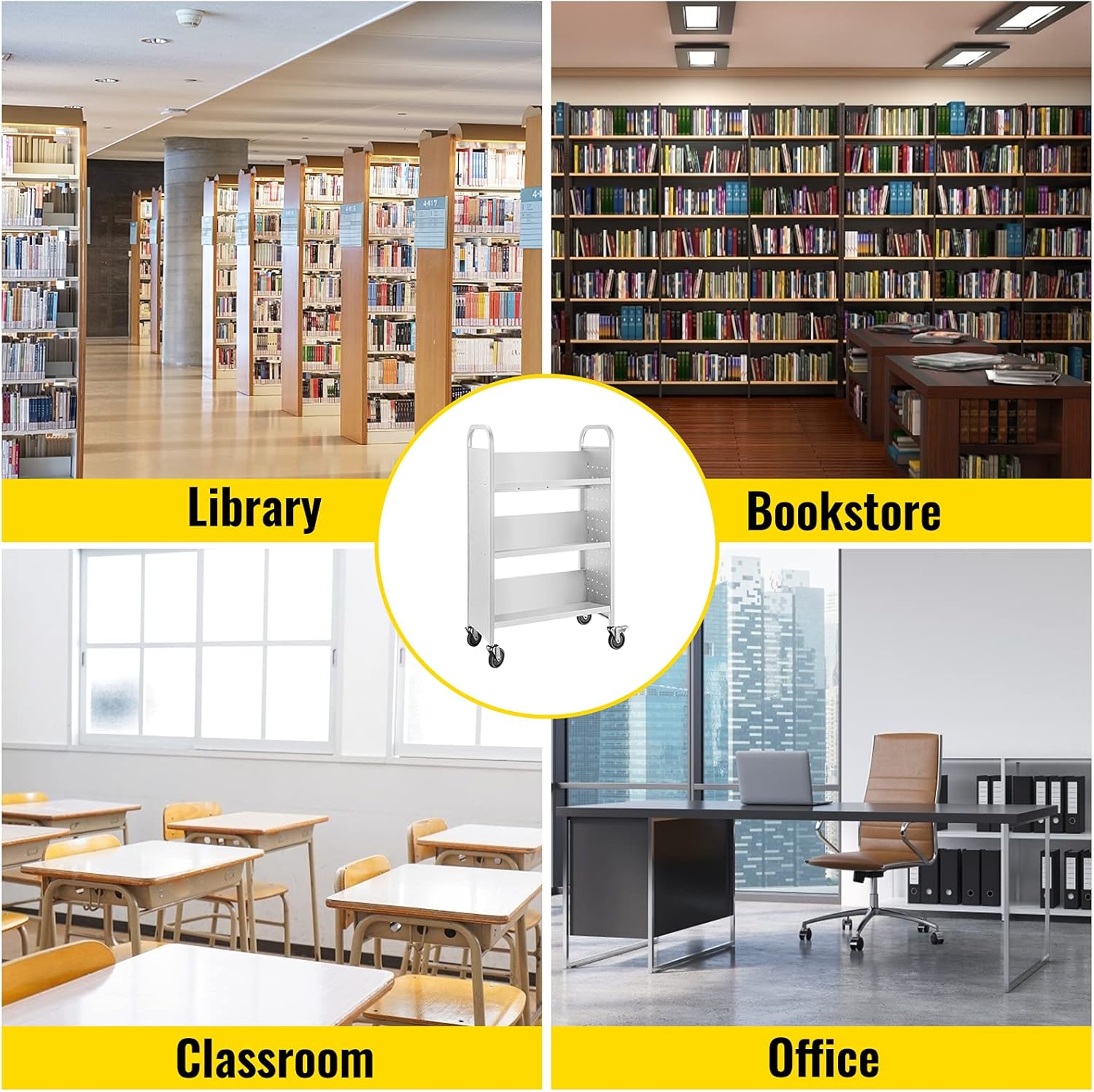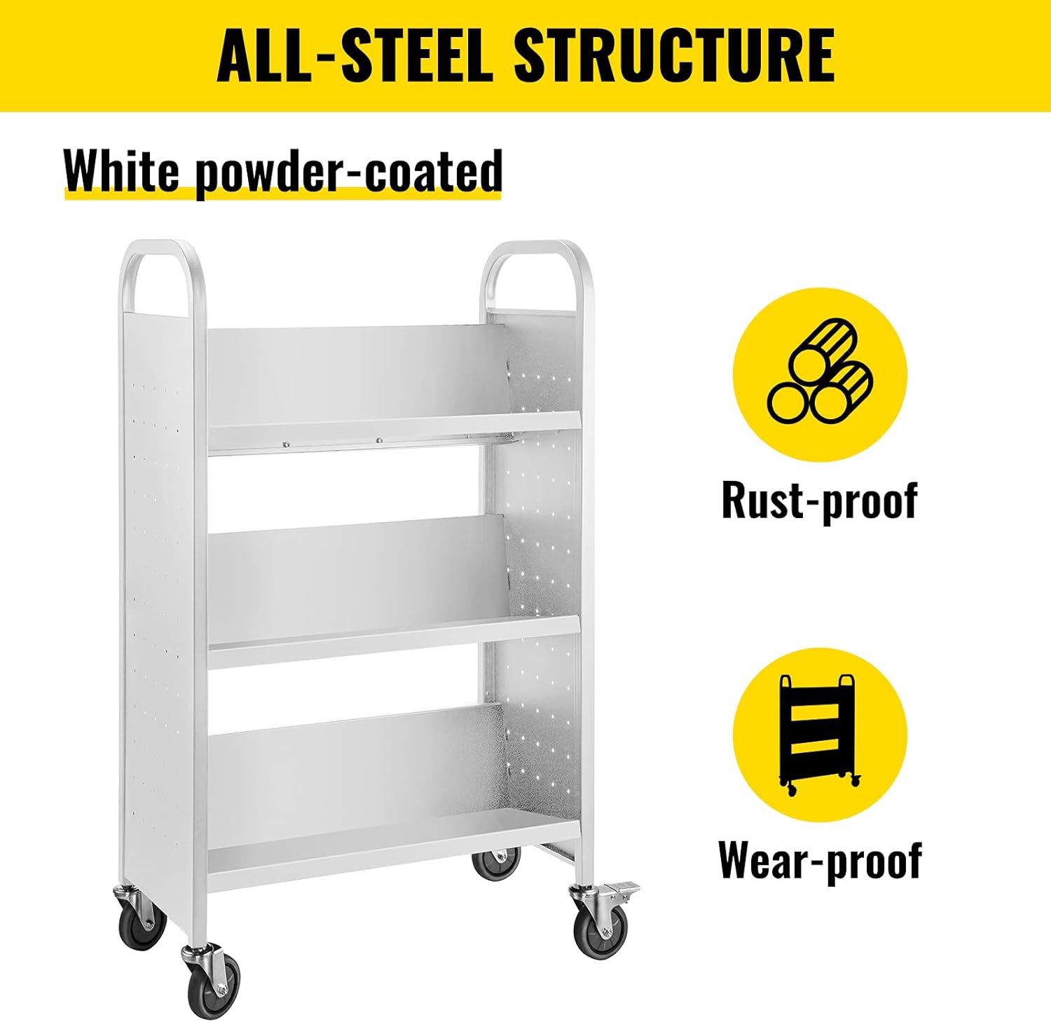BestEquip Book Cart, 200LBS Library Cart, 49.2''x29.5''x13.8'' Rolling Book Cart, Single Sided V-Shaped Sloped Shelves with 4 Inch Lockable Wheels for Home Shelves Office School Book Truck, White