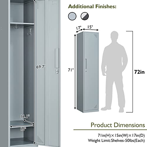 6 Doors Metal Storage Locker, 72" Steel Storage Lockers for Employees, Lockable Lockers for Home, Office, Gym, School, Assembly Required (6 Doors, grey door)